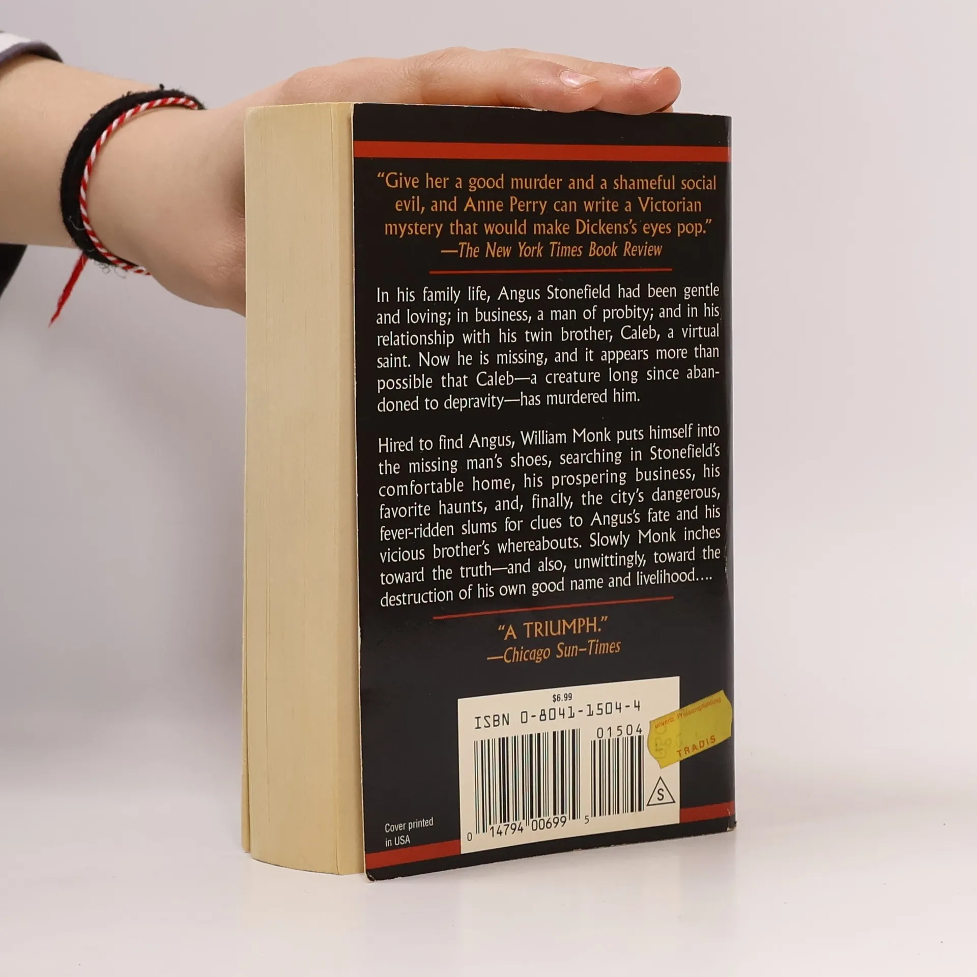 Victoria's London was the queen of the universe, a dazzling city from whose magnificent mansions and discreetly luxurious clubs flowed the strategies that built the greatest empire ever known. Meanwhile, the city's poor suffered and died in hopeless obscurity. Inspector William Monk believes he knows his city's best and worst-- until the day Genevieve Stonefield comes to plead with him to find her missing husband. Angus Stonefield had been gentle and loving in his family life; in his relationship with is twin brother, Caleb, a virtual saint. Now he is missing and it appears more than possible that Caleb has murdered him. As Monk inches toward the truth, he also moves unwittingly towards the destruction of his good name and livelihood.