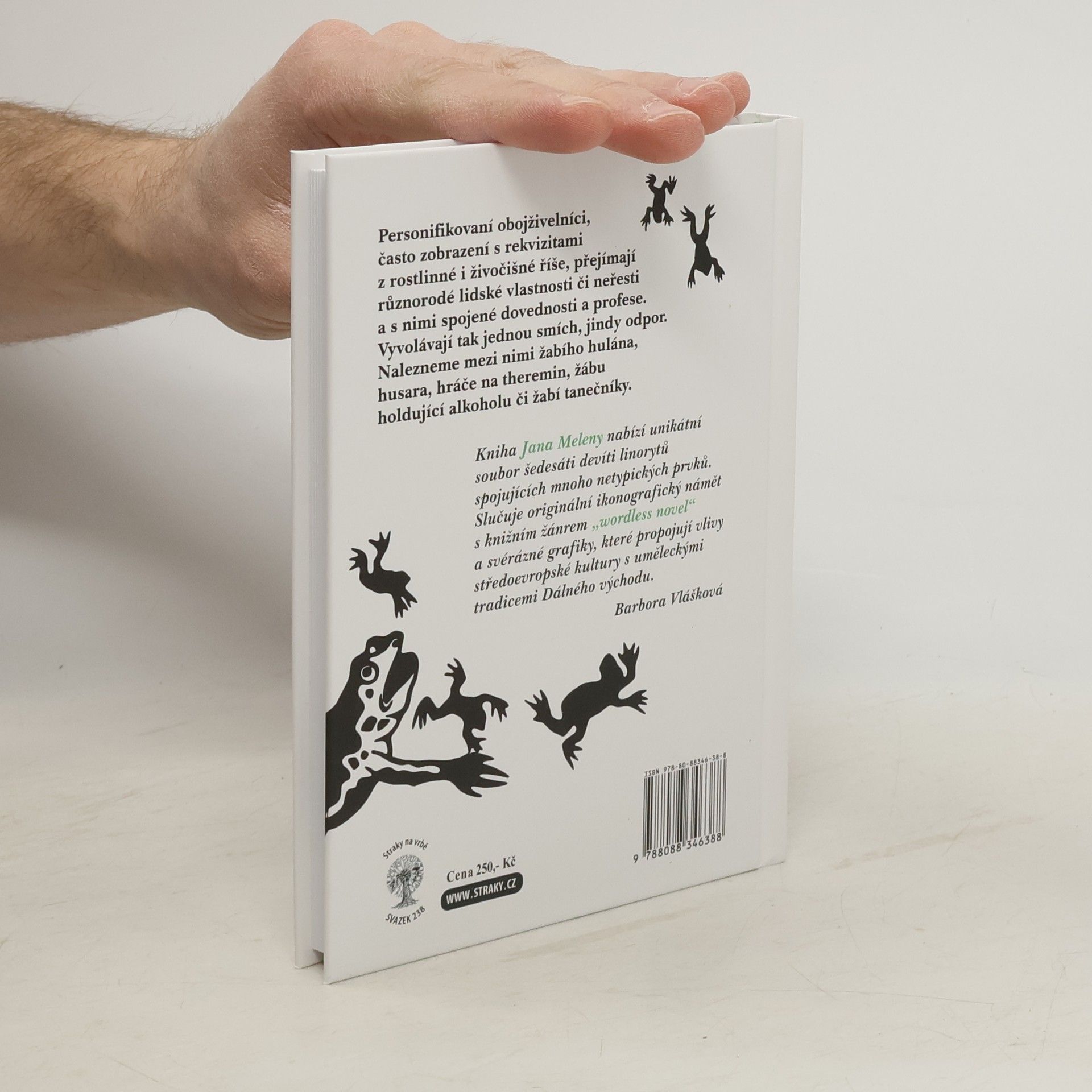 Tzv. román beze slov, či román v obrazech, je vyprávěn výhradně graficky, pomocí 69 linorytů. Personifikovaní obojživelníci, často zobrazení s rekvizitami z rostlinné i živočišné říše, přejímají různorodé lidské vlastnosti či neřesti a s nimi spojené dovednosti a profese. Vyvolávají tak jednou smích, jindy odpor. Nalezneme mezi nimi žabího hulána, husara, hráče na theremin, žábu holdující alkoholu či žabí tanečníky. Nakladatelská anotace.