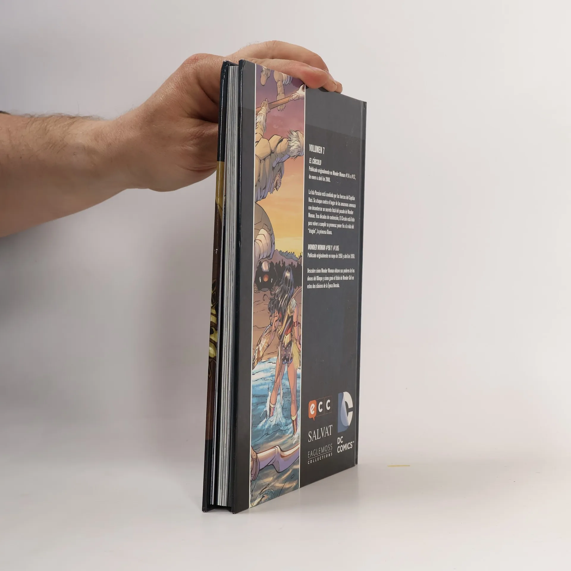 EL CÍRCULO Publicado originalmente en Wonder Woman #14 a #17, de enero a abril de 2008. La Isla Paraíso está asediada por las fuerzas del Capitán Nazi. Su ataque contra el hogar de las amazonas amenaza con desenterrar un secreto fatal del pasado de Wonder Woman. Tras décadas de contención, El Círculo está listo para volver a cumplir su promesa: poner fin a la vida del “dragón”, la princesa Diana. WONDER WOMAN #98 Y #105 Publicado originalmente en mayo de 1958 y abril de 1959. Descubre cómo Wonder Woman obtuvo sus poderes de los dioses del Olimpo y cómo ganó el título de Wonder Girl en estos dos clásicos de la Época Dorada.
