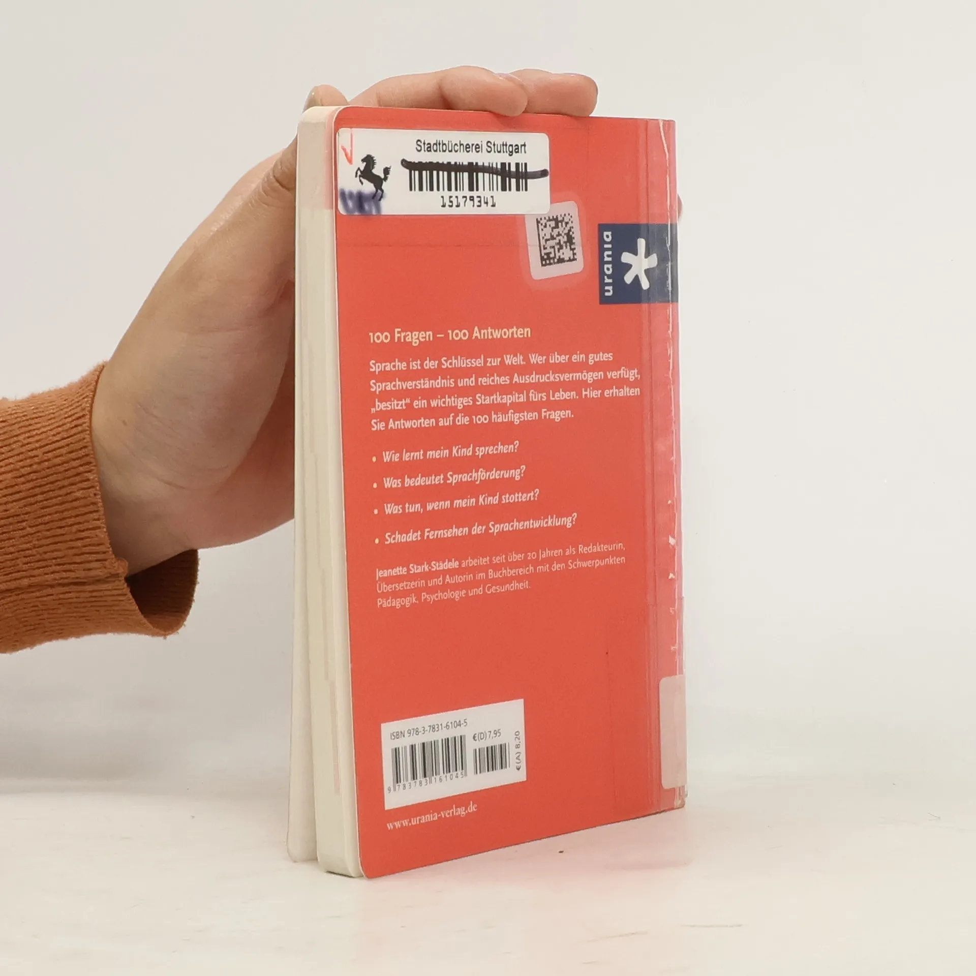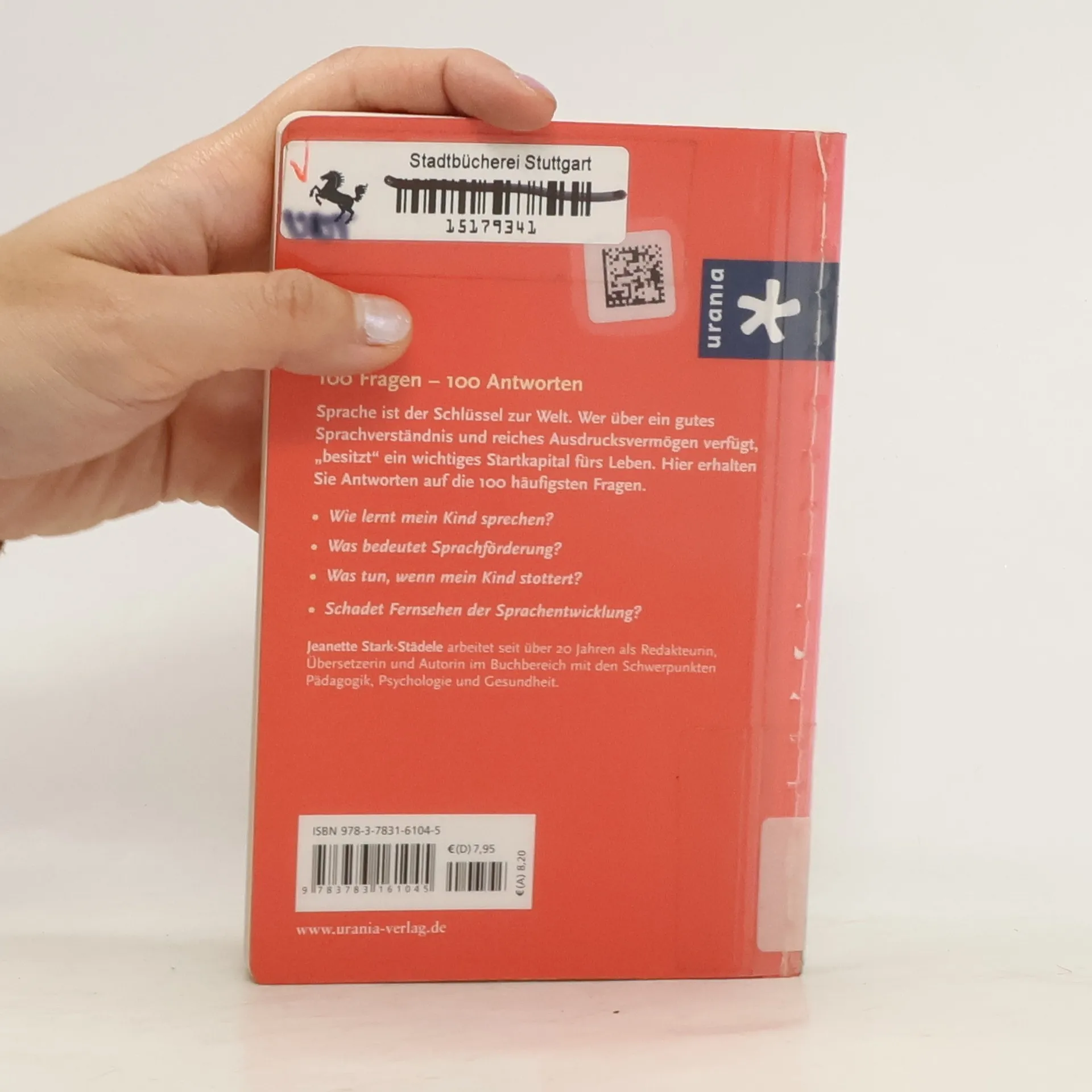 100 Fragen -100 AntwortenSprache ist der Schlüssel zur Welt.Wer über ein gutes Sprachverständnis und reiches Ausdrucksvermögen verfügt ,,besitzt" ein wichtiges Startkapital fürs Leben.Hier erhalten Sie Antworten auf die 100 häufigsten Fragen.Wie lernt mein Kind sprechen?Was bedeutet Sprachförderung?Was tun,wenn mein Kind stottert?Schadet Fernsehen der Sprachentwicklung?