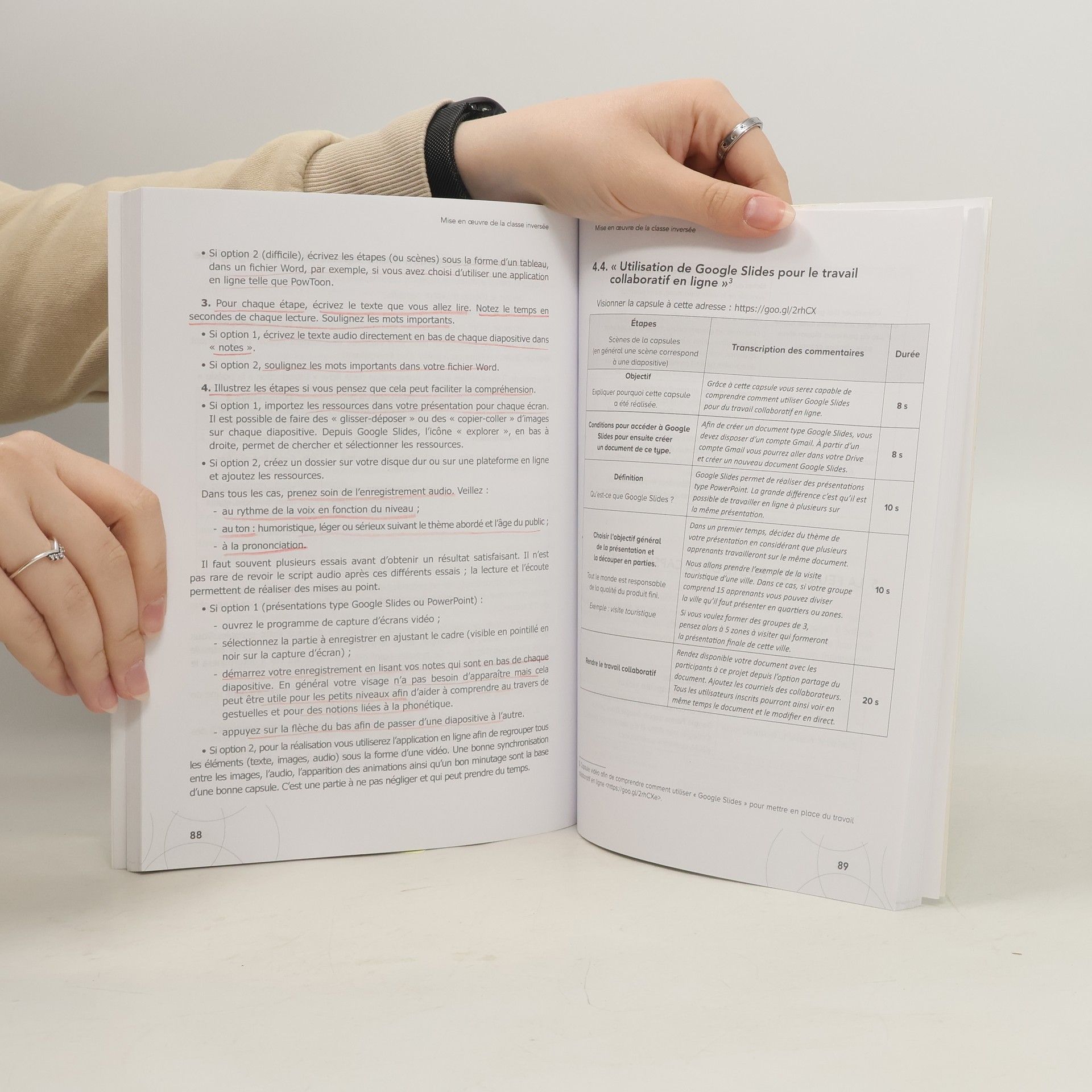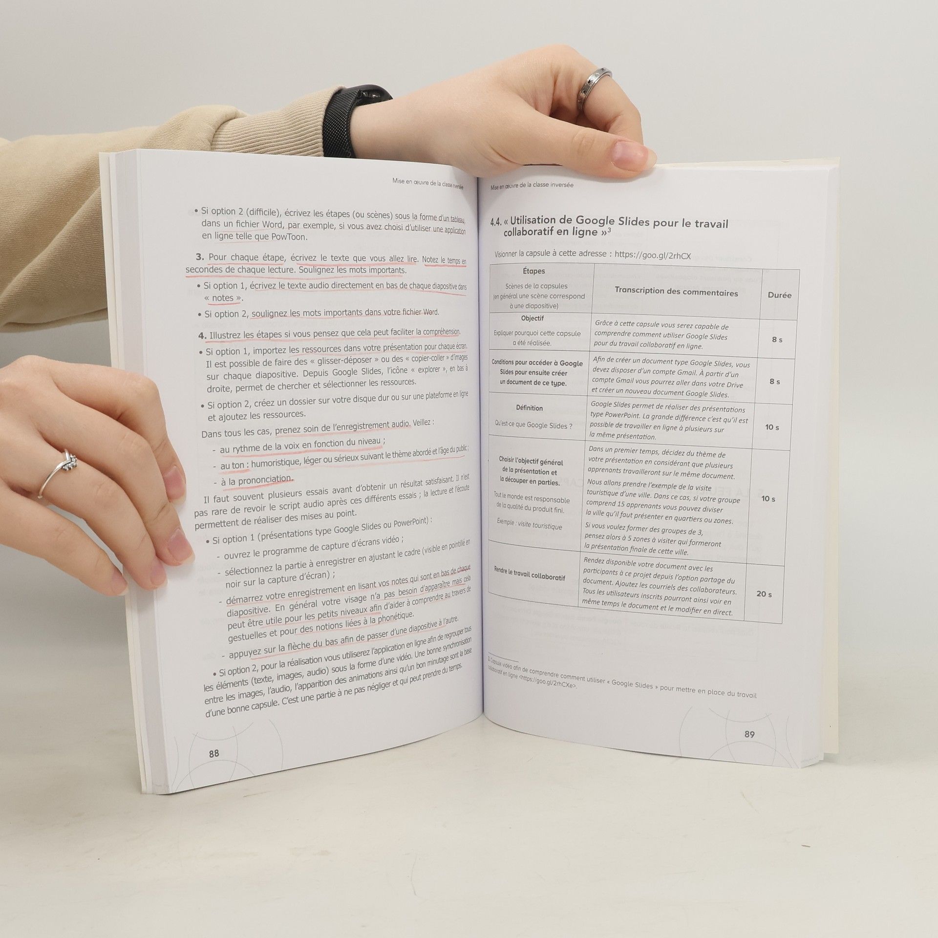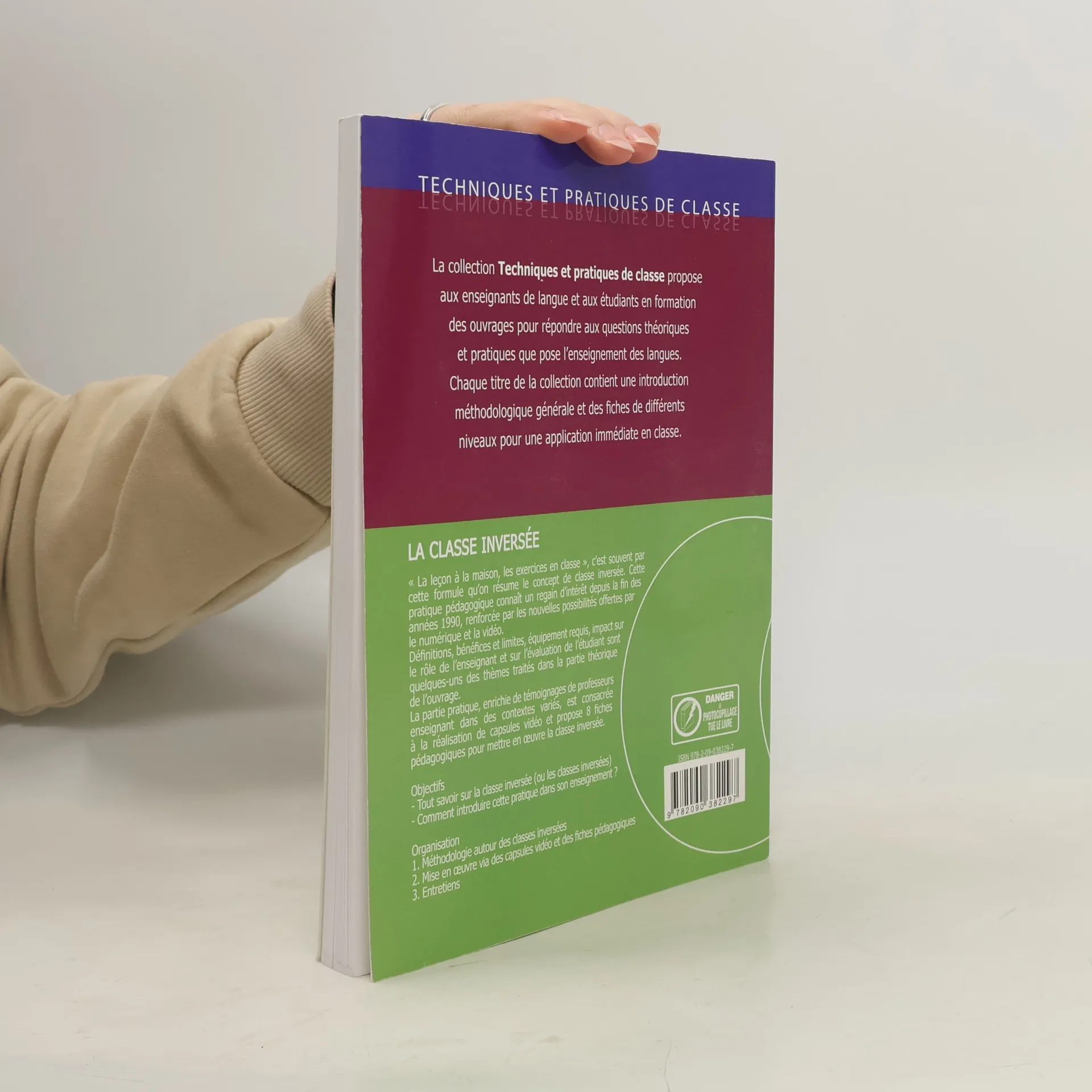 Ouvrage de didactique dans la collection Techniques et pratiques de classe , manuel en français langue étrangère (FLE) pour les professeurs et futurs professeurs. " La leçon à la maison, les exercices en classe ", c'est souvent par cette formule qu'on résume le concept de classe inversée. Cette pratique pédagogique connaît un regain d'intérêt depuis la fin des années 1990, renforcée par les nouvelles possibilités offertes par le numérique et la vidéo.Définitions, bénéfices et limites, équipement requis, impact sur le rôle de l'enseignant et sur l'évaluation de l'étudiant sont quelques-uns des thèmes traités dans la partie théorique de l'ouvrage.La partie pratique, enrichie de témoignages de professeurs enseignant dans des contextes variés, est consacrée à la réalisation de capsules vidéo et propose 8 fiches pédagogiques pour mettre en oeuvre la classe inversée.ObjectifsTout savoir sur la classe inversée (ou les classes inversées)Comment introduire cette pratique dans son enseignement ?Organisation1. Méthodologie autour des classes inversées2. Mise en oeuvre via des capsules vidéo et des fiches pédagogiques3. Entretiens