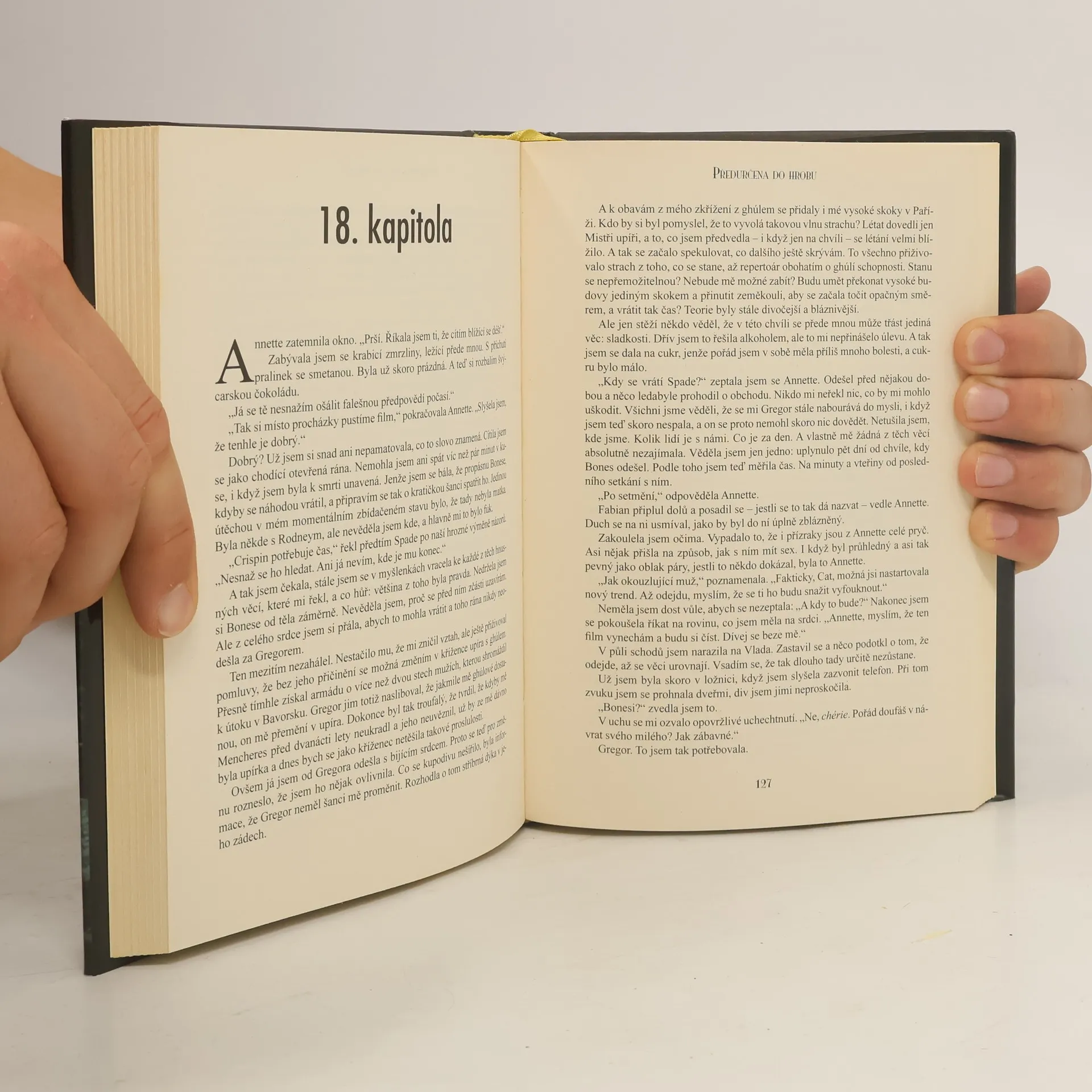 Poloviční upírka Cat Crawfieldová a její nemrtvý milenec Bones se potkali před šesti lety a od té doby bojovali proti zákeřným nemrtvým, utkali se s pomstychtivým Mistrem upírem a stvrdili své vzájemné pouto krví. Nyní je čas dát si oddych. Ale naděje na bezchybnou dovolenou v Paříži se zhroutí v okamžiku, kdy se Cat jedné noci probudí z hrůzostrašného snu. Pronásledují ji vidiny, v nichž se zjevuje upír jménem Gregor. Ten je mocnější než Bones a má vazbu na její minulost, o níž neví ani sama Cat. Gregor věří, že Cat patří jemu a nedá si pokoj, dokud ji nedostane. Začíná bitva mezi upírem, který ji straší ve snech, a tím, kdo má její srdce. A je to jedině Cat sama, kdo dokáže Gregorovu moc zlomit. Aby zničila nejhoršího upíra, jakému kdy čelila, bude muset sebrat veškerou možnou sílu. I kdyby takové síly mohla dosáhnout jedině předčasnou cestou do hrobu... 1. vydání. – zdroj: www.legie.info –