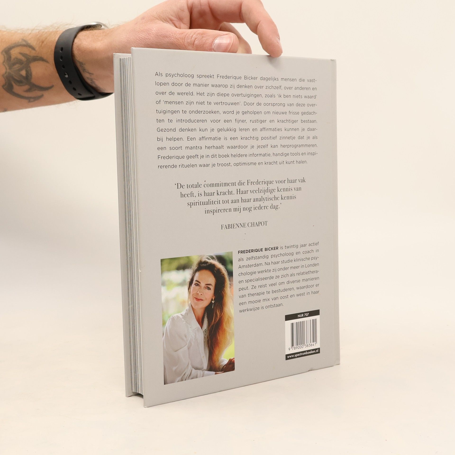 Een boek vol woorden die je leven kunnen veranderen Als psycholoog spreekt Frederique Bicker dagelijks mensen die vastlopen door de manier waarop zij denken over zichzelf, over anderen en over de wereld. Het zijn diepe overtuigingen, zoals 'ik ben niets waard' of 'mensen zijn niet te vertrouwen'. Door de oorsprong van deze overtuigingen te onderzoeken, word je geholpen om nieuwe frisse gedachten te introduceren voor een fijner, rustiger en krachtiger bestaan. Gezond denken kun je gelukkig leren en affirmaties kunnen je daarbij helpen. Een affirmatie is een krachtig positief zinnetje dat je als een soort mantra herhaalt waardoor je jezelf kan herprogrammeren. Frederique geeft je in dit boek heldere informatie, handige tools en inspirerende rituelen waar je troost, optimisme en kracht uit kunt halen. 'De totale commitment die Frederique voor haar vak heeft, is haar kracht. Haar veelzijdige kennis van spiritualiteit tot aan haar analytische kennis inspireren mij nog iedere dag.' Fabienne Chapot Frederique Bicker is twintig jaar actief als zelfstandig psycholoog en coach in Amsterdam. Na haar studie klinische psychologie werkte zij onder meer in Londen en specialiseerde ze zich als relatietherapeut. Ze reist veel om diverse manieren van therapie te bestuderen, waardoor er een mooie mix van oost en west in haar werkwijze is ontstaan. Bron: Flaptekst, uitgeversinformatie.