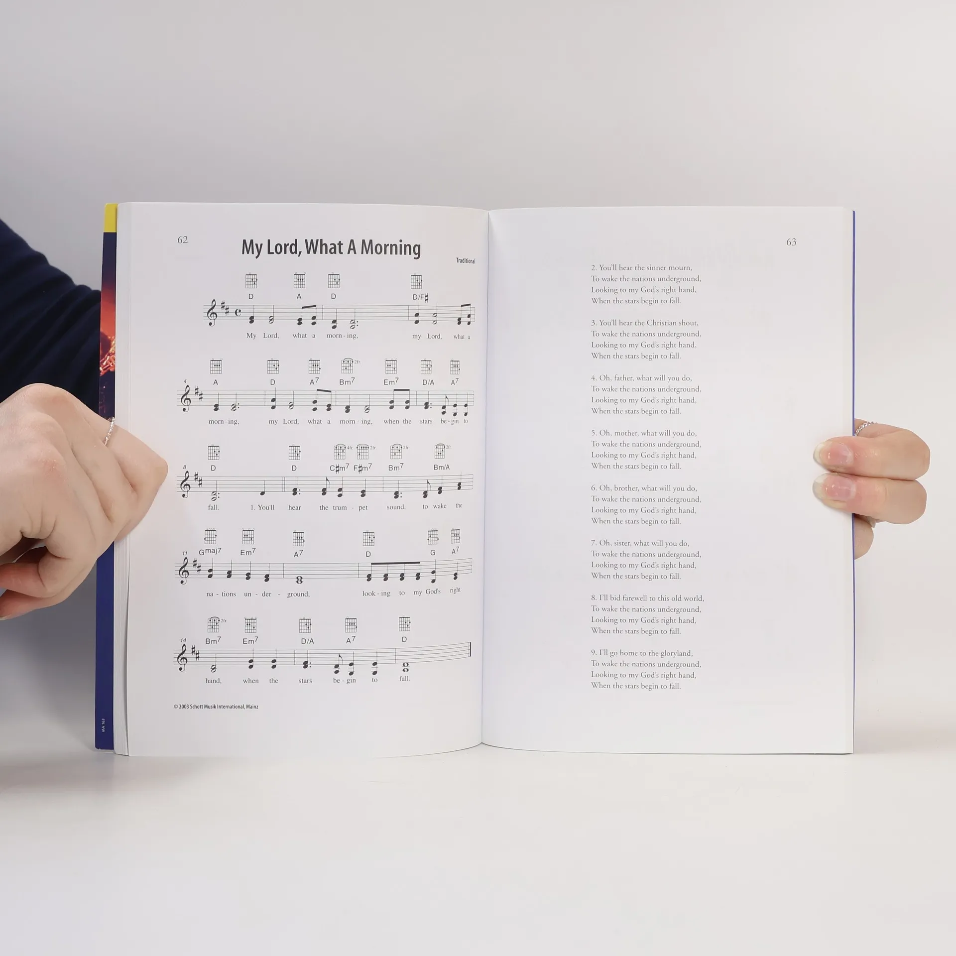 This anthology features a collection of beautiful and popular tunes in fresh arrangements, designed for easy piano accompaniment. It includes a separate voice part with an optional second voice, and for guitarists, it provides fingering notation and chord symbols. The selection encompasses a variety of beloved songs such as "Amazing Grace," "Deep River," "Go Down, Moses," "Hallelu', Hallelu'," "I'll Fly Away," and "Swing Low, Sweet Chariot." Other notable tracks include "Every Time I Feel The Spirit," "Oh, Happy Day," "Rock My Soul," and "Wade In The Water." Each piece is carefully arranged to be accessible for musicians of varying skill levels, making it an ideal resource for both performance and personal enjoyment. Whether for a choir, solo performance, or casual gatherings, this compilation captures the essence of the genre, inviting singers and instrumentalists alike to explore the rich musical heritage it represents.