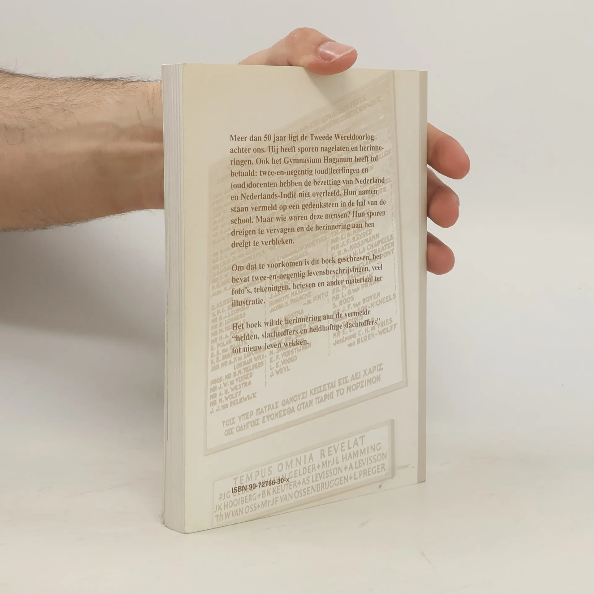 Van de leerlingen en de leraren van het Gymnasium Haganum te Den Haag hebben relatief een groot aantal de Tweede Wereldoorlog niet overleefd. In 1948 werd in de hal van de school een gedenksteen onthuld, waarop de namen van 81 (oud-)leerlingen en -docenten werden vermeld, later aangevuld met nog elf namen. Dit gedenkboek is verdeeld in 4 hoofdstukken, waarin naast de levensbeschrijvingen onder meer aandacht wordt besteed aan de eerste oorlogsjaren en hun slachtoffers, de holocaust van joodse leerlingen en docenten, de verzetsstrijders en de slachtoffers van de oorlog in Nederlands-Indië. Vele leerlingen van het gymnasium behoorden tot bekende families met namen als De Brauw, Baud en Ter Pelkwijk, en wat de joodse leerlingen betreft De Pinto, Goudsmit en Mendels. Een register verwijst naar alle levensbeschrijvingen.