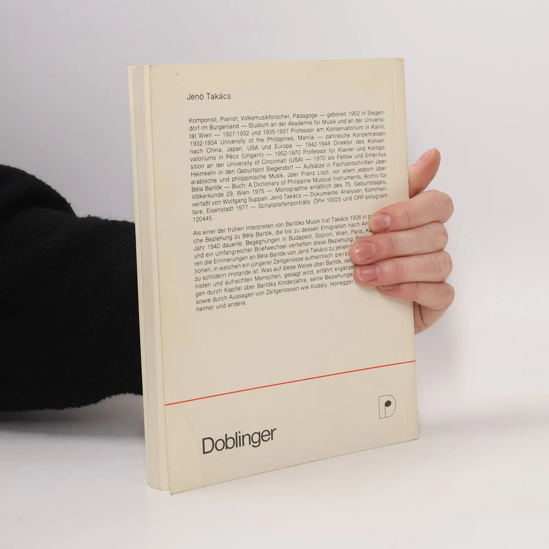 Der Komponist, Pianist, Volksmusikforscher und Pädagoge Jenö Takács trat als einer der frühen Interpreten von Bartóks Musik 1926 in persönliche Beziehung zu Béla Bartók, die bis zu dessen Emigration nach Amerika im Jahr 1940 dauerte. Begegnungen in Budape