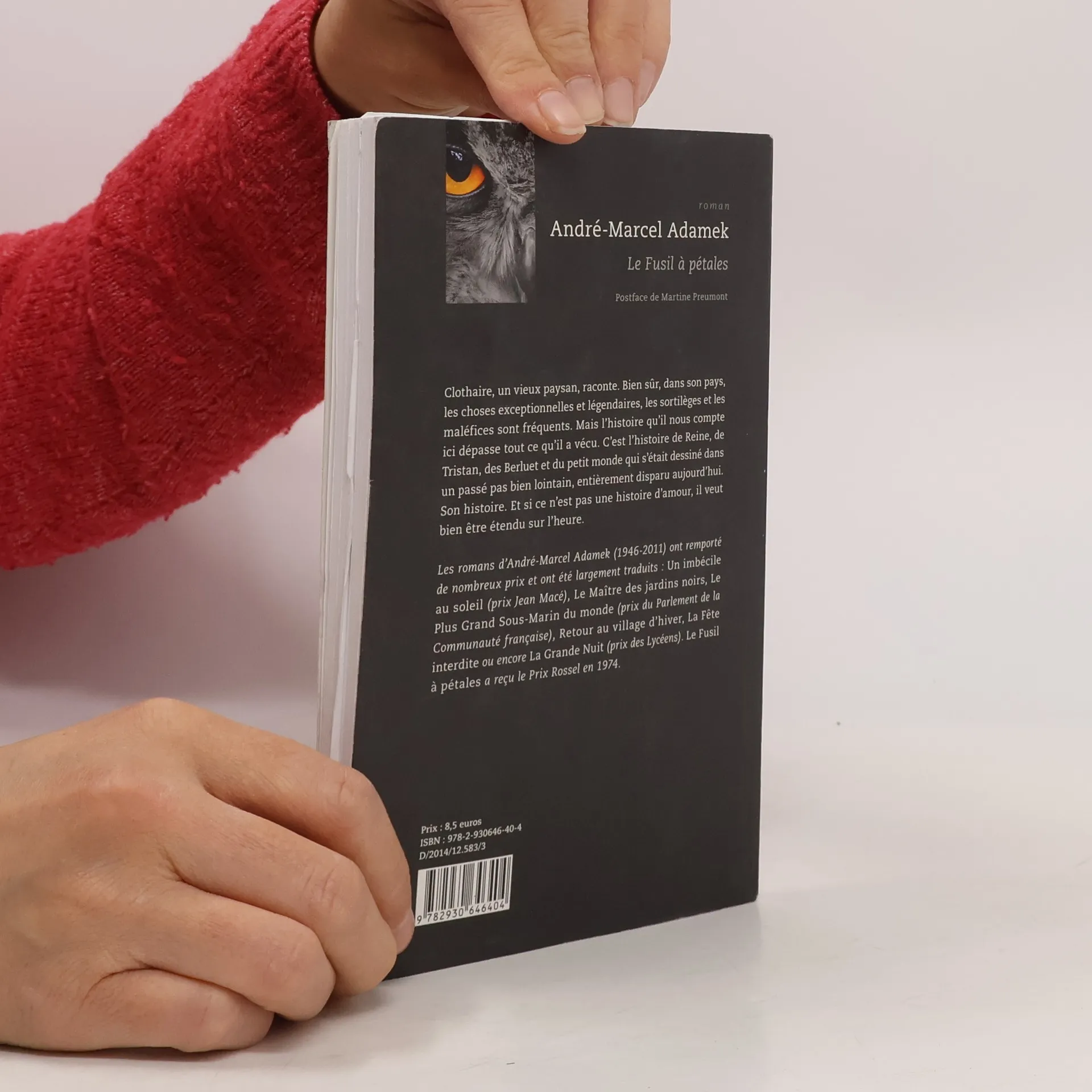 Clothaire, un vieux paysan, raconte. Bien sûr, dans son pays, les choses exceptionnelles et légendaires, les sortilèges et les maléfices sont fréquents. Mais l'histoire qu'il nous compte ici dépasse tout ce qu'il a vécu. C'est l'histoire de Reine, de Tristan, des Berluet et du petit monde qui s'était dessiné dans un passé pas bien lointain ; entièrement disparu aujourd'hui. Son histoire. Et si ce n'est pas une histoire d'amour, il veut bien être étendu sur l'heure. Les romans d'André-Marcel Adamek (1946-2011) ont remporté de nombreux prix et ont été largement traduits : Un imbécile au soleil (prix Jean Macé), Le Maître des jardins noirs, Le Plus Grand Sous-Marin du monde (prix du Parlement de la Communauté française), Retour au village d'hiver, La Fête interdite ou encore La Grande Nuit (prix des Lycéens). Le Fusil à pétales a reçu le Prix Rossel en 1974.