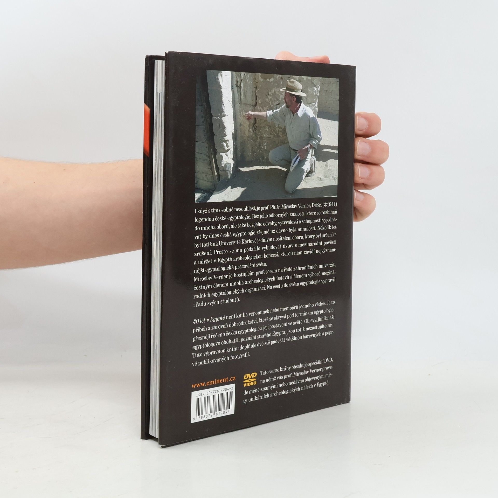 I když s tím osobně nesouhlasí, je prof. PhDr. Miroslav Verner, DrSc. legendou české egyptologie. Bez jeho odborných znalostí, které se rozbíhají do mnoha oborů, ale také bez jeho odvahy, vytrvalosti a schopnosti vyjednávat by dnes česká egyptologie zřejmě už dávno byla minulostí. Několik let byl totiž na Univerzitě Karlově jediným nositelem oboru, který byl určen ke zrušení. Přesto se mu podařilo vybudovat ústav s mezinárodní pověstí a udržet v Egyptě archeologickou koncesi, kterou nám závidí nejvýznamnější egyptologická pracoviště světa. Miroslav Verner je hostujícím profesorem na řadě zahraničních univerzit, čestným členem mnoha archeologických ústavů a členem výborů mezinárodních egyptologických organizací. Na cestu do světa egyptologie vypravil i řadu svých studentů. 40 let v Egyptě není kniha vzpomínek nebo memoárů jednoho vědce. Je to příběh a zároveň dobrodružství, které se skrývá pod termínem egyptologie; přesněji řečeno česká egyptologie a její postavení ve světě. Objevy, jimiž naši egyptologové obohatili poznání starého Egypta, jsou totiž nezastupitelné. Výpravnou knihu doplňuje dvě stě padesát většinou barevných a poprvé publikovaných fotografií.