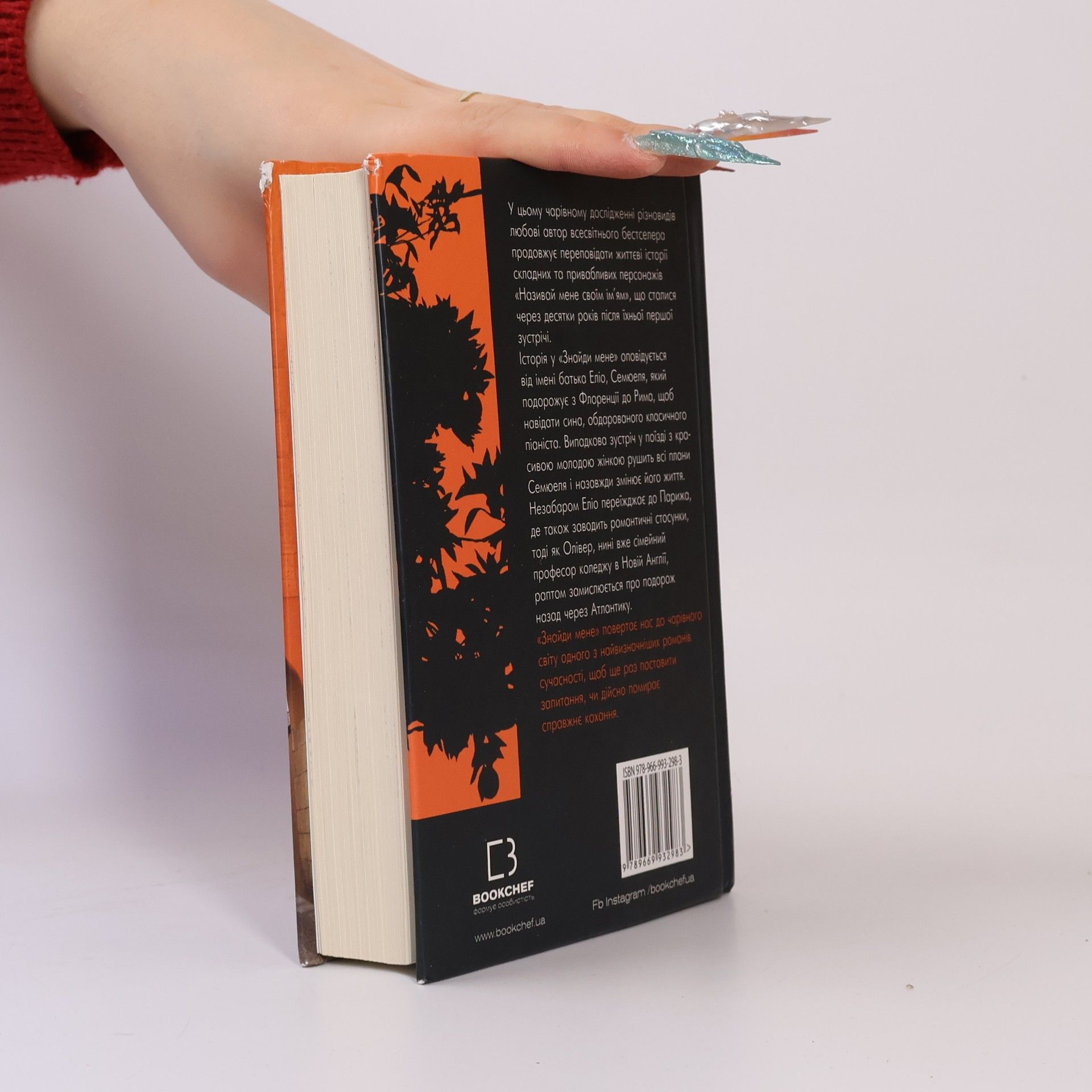 "У цьому чарівному дослідженні різновидів любові, автор всесвітнього бестселера продовжує переповідати життєві історії складних та привабливих персонажів "Називай мене своїм ім'ям", що сталися через десятки років після їхньої першої зустрічі. Історія у "Знайди мене" оповідується від імені батька Еліо, Семюеля, який подорожує з Флоренції до Риму, щоб навідати сина, обдарованого класичного піаніста. Випадкова зустріч у поїзді з красивою молодою жінкою рушить всі плани Семюеля і назавжди змінює його життя. Незабаром Еліо переїжджає до Парижа, де також заводить романтичні стосунки, тоді як Олівер, нині вже сімейний професор коледжу в Новій Англії, раптом замислюється про подорож назад через Атлантику. "Знайди мене" повертає нас до чарівного світу одного з найвизначніших романів сучасності, щоб ще раз поставити запитання, чи помирає насправді справжнє кохання." --