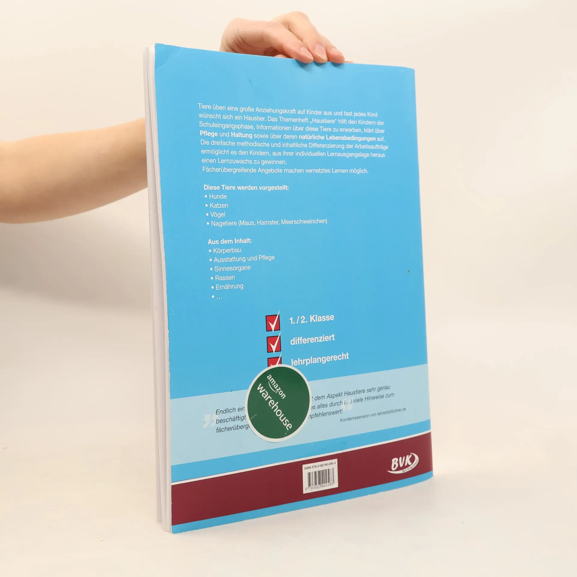 Tiere üben eine grosse Anziehungskraft auf Kinder aus und fast jedes Kind wünscht sich ein Haustier. Das Themenheft "Haustiere" hilft den Kindern der Schuleingangsphase, Informationen über diese Tiere zu erwerben, klärt über Pflege und Haltung sowie über deren natürliche Lebensbedingungen auf. Die dreifache methodische und inhaltliche Differenzierung der Arbeitsaufträge ermöglicht es den Kindern, aus ihrer individuellen Lernausgangslage heraus einen Lernzuwachs zu gewinnen. Fächerübergreifende Angebote machen vernetztes Lernen möglich. Aus dem Inhalt: Tiere: Hunde - Katzen - Vögel - Nagetiere (Maus, Hamster, Meerschweinchen), Themen: Körperbau - Ausstattung und Pflege - Sinnesorgane ... (Quelle: www.buchverlagkempen.de).