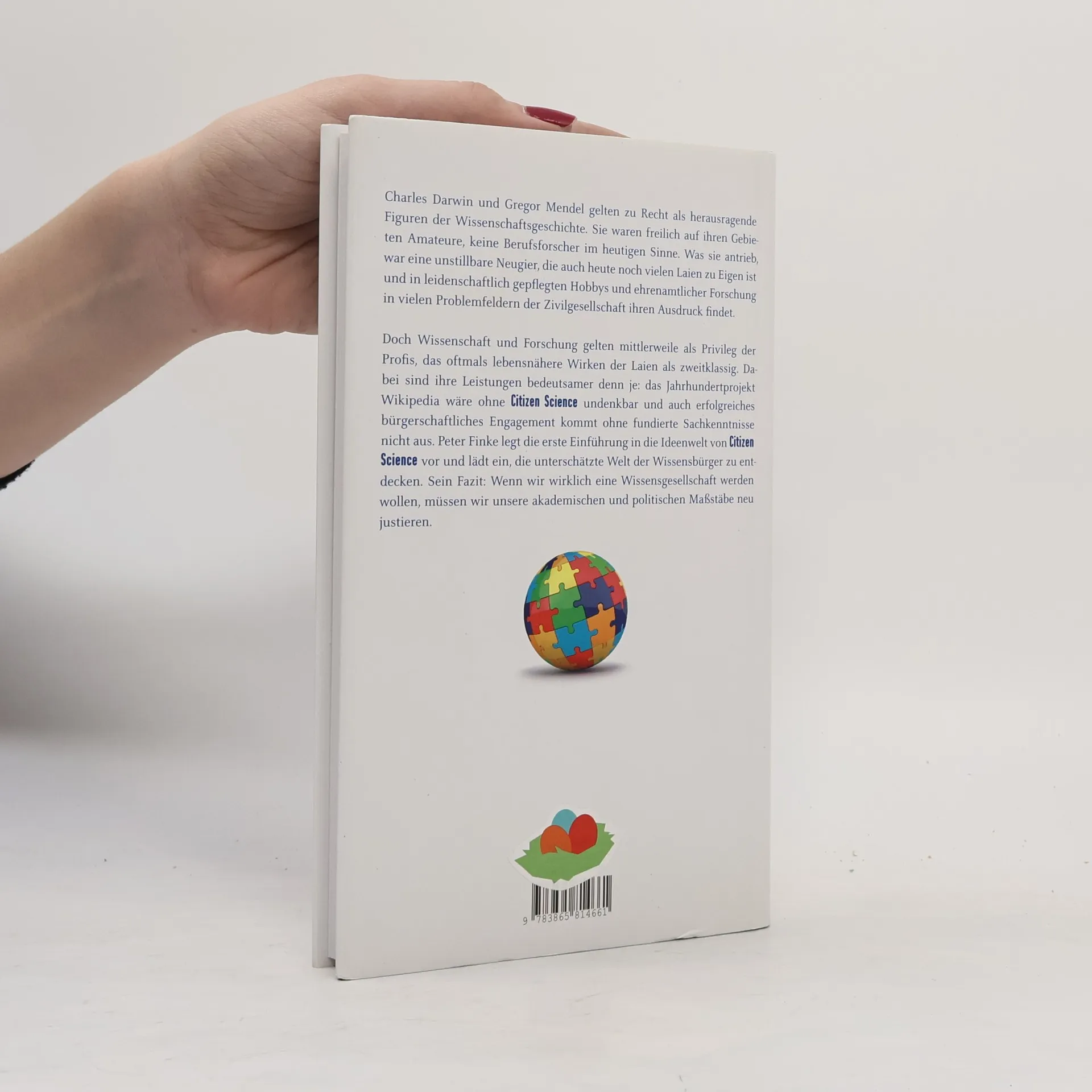 Charles Darwin und Gregor Mendel gelten zu Recht als herausragende Figuren der Wissenschaftsgeschichte. Sie waren auf ihren Gebieten Amateure, keine Berufsforscher im heutigen Sinne. Was sie antrieb, war eine unstillbare Neugier, die auch heute noch vielen Laien zu Eigen ist und in leidenschaftlich gepflegten Hobbys und ehrenamtlicher Forschung in vielen Problemfeldern der Zivilgesellschaft ihren Ausdruck findet. Doch Wissenschaft und Forschung gelten mittlerweile als Privileg der Profis, das oftmals lebensnähere Wirken der Laien als zweitklassig. Dabei sind ihre Leistungen bedeutsamer denn je: das Jahrhundertprojekt Wikipedia wäre ohne Citizen Science undenkbar und auch erfolgreiches bürgerschaftliches Engagement kommt ohne fundierte Sachkenntnisse nicht aus. Peter Finke legt die erste Einführung in die Ideenwelt von Citizen Science vor und lädt ein, die unterschätzte Welt der Wissensbürger zu entdecken. Sein Fazit: Wenn wir wirklich eine Wissensgesellschaft werden wollen, müssen wir unsere akademischen und politischen Maßstäbe neu justieren.