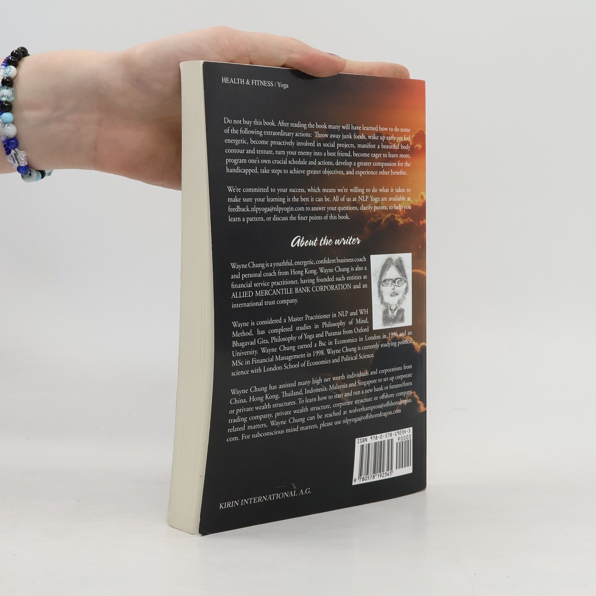 Do not buy this book. After reading the book many will have learned how to do some of the following extraordinary actions: Throw away junk foods, wake up early yet feel energetic, become proactively involved in social projects, manifest a beautiful body contour and texture, turn your enemy into a best friend, become eager to learn more, program one’s own crucial schedule and actions, develop a greater compassion for the handicapped, take steps to achieve greater objectives, and experience other benefits. We’re committed to your success, which means we’re willing to do what it takes to make sure your learning is the best it can be. All of us at NLP Yoga are available at feedback.nlpyoga@nlpyogin.com to answer your questions, clarify points, to help you learn a pattern, or discuss the finer points of this book.