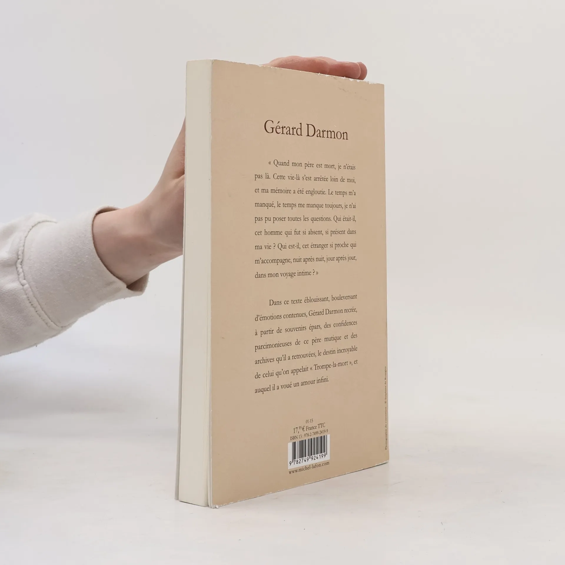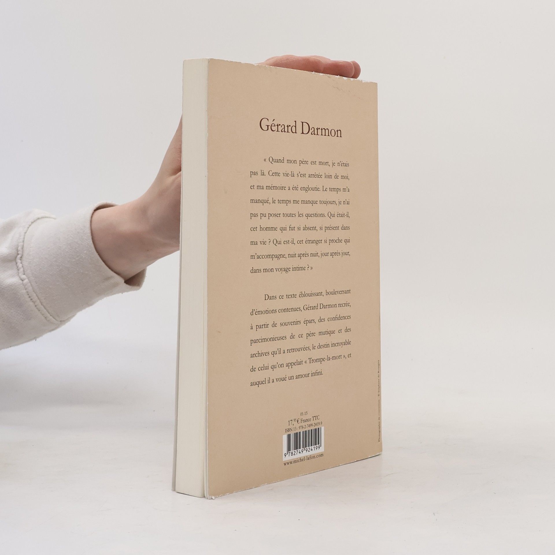 ~~C'est le portrait d'un juste, enveloppé dans le brouillard de la mémoire, qui se dessine ici. Loin de nous livrer un document, Gérard Darmon signe un poème à son père, un texte impressionniste où, par petites touches comme dans les tableaux de Pierre Bonnard, on devine la silhouette d'un homme, un vrai. ~~Il a été le commissaire Bialès de La Cité de la peur, le fourbe Amonbofis dans Astérix : mission Cléopâtre, le Jeff du Cœur des hommes... Gérard Darmon, adoré du public, est un personnage qui échappe à toute classification. Dans Mon Père, on l'appelait " Trompe-la-Mort ", il revient sur son enfance, et sur l'histoire d'un être qui a modelé sa vie mais qu'il a mis des années à connaître : son père, Henri Messaoud Darmon. Car le destin a été étrange : ce n'est que tardivement, alors qu'il était adulte, que Gérard Darmon a appris, par bribes, le passé de cet homme.Spahi dans les années 1920, petit voyou à Montmartre dans l'entre-deux guerres, toujours prompt à se faire respecter et à affronter les coups durs, Henri Darmon a gagné son surnom de " Trompe-la-Mort " dans le milieu des " gars ". Juif, il a échappé à une rafle mortelle pendant l'Occupation, puis s'est engagé comme chauffeur au service des Allemands, tout en travaillant pour l'Intelligence Service alors qu'il était dans la gueule du loup. À la fin de la guerre, il militait dans un réseau de Résistance à Paris...C'est avant tout une aventure humaine incroyable que raconte Gérard Darmon, d'une plume sensible et émouvante. Car son père ne parlait pas : il a fallu que l'auteur aille pêcher dans ses souvenirs, dans ses rares photos, dans ce passé qui s'échappe sans cesse. C'est le portrait d'un juste, enveloppé dans le brouillard de la mémoire, qui se dessine ici. Loin de nous livrer un document, Gérard Darmon signe un poème à son père, un texte impressionniste où, par petites touches comme dans les tableaux de Pierre Bonnard, on devine la silhouette d'un homme, un vrai.