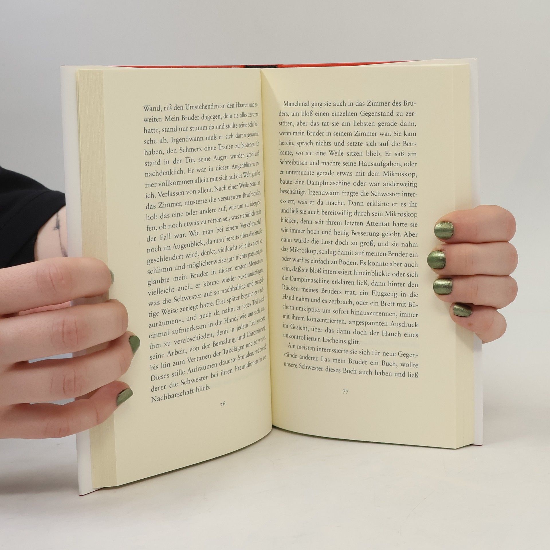 Am Beginn dieses Lebens ist Herbst, und Enten schwimmen auf dem Bad Nauheimer Teich. Der Erzähler erinnert sich an ein Paradies, ein Leben ganz ohne Menschen und Zwänge. Die ersten drei Jahre verlebt er bei seiner Urgroßmutter. Aber dann kommt der Einzug in das große, neue Haus der Familie, das dort gebaut worden ist, wo vormals die Apfelbäume standen. Das leere Haus wird zum Lebenszentrum des Kindes. Auf der Flucht vor dem grellen Küchenlicht des gemeinsamen Abendessens werden die unteren Regionen, die Kellerräume mit ihren Ölbrennern und Tankanlagen, zu seiner abgründigen Heimat. Das Kind spricht lange nicht, nimmt keinen Kontakt zu seiner Umwelt auf, wird zu Ärzten gebracht. Später fliegt der Keller als Raumschiff Enterprise in den Wetterauer Himmel, und der ältere Bruder ist der Kommandant. Während die Schwester, laut wie die Posaunen von Jericho, die Wände des Hauses zum Erzittern bringt. Mit „Das Haus“ setzt Andreas Maier konsequent fort, was er mit seinem Erfolgsroman „Das Zimmer“ begonnen hat. Ein Buch, ein Haus, ein Leben, nahe herangezoomt, dann wieder fast klinisch sezierend auf Abstand gebracht und immer erfüllt von der Seele des Kindes – und von dem vielleicht, was wir lange schon vergessen haben, auch wenn es einmal unser aller Ursprung gewesen ist.