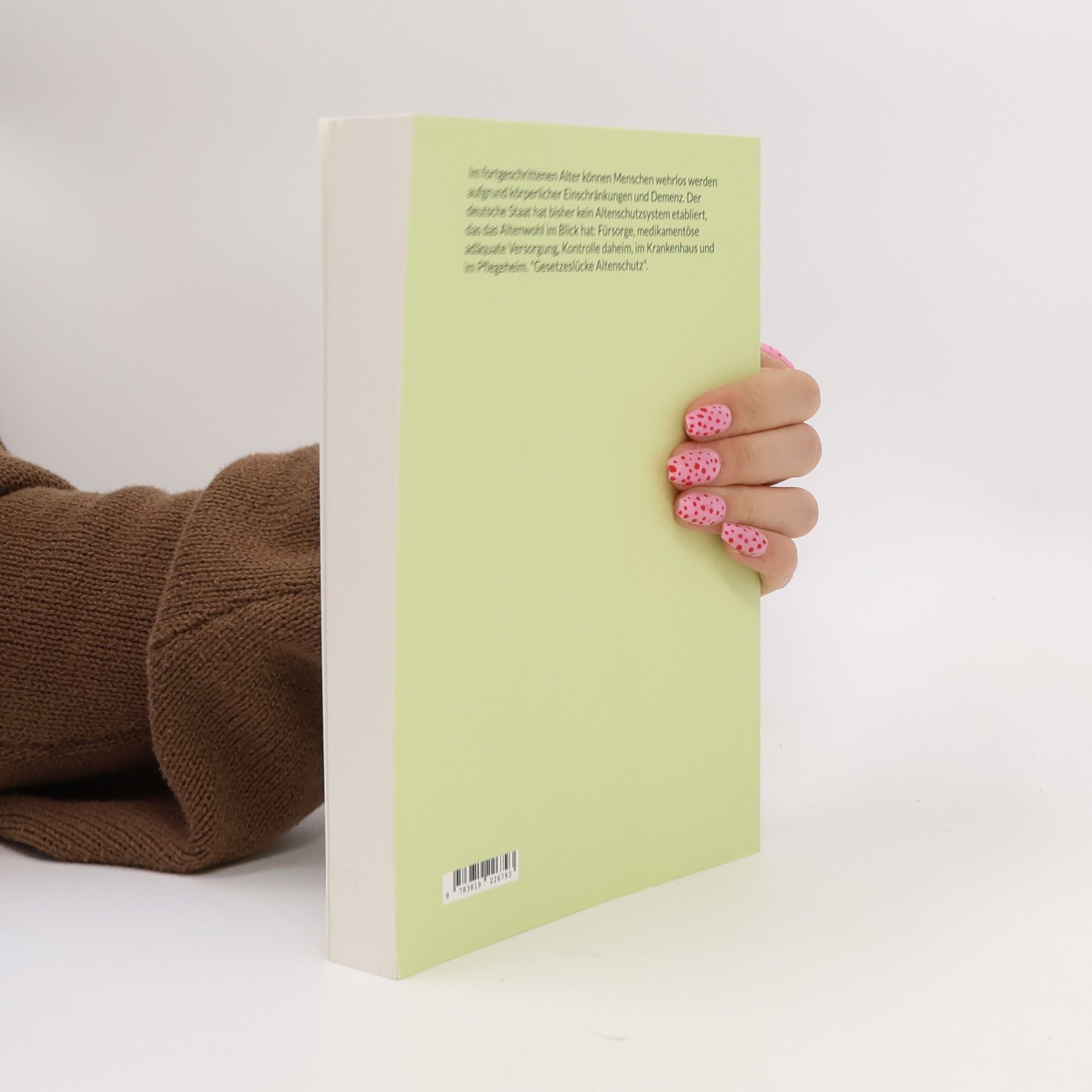 Im fortgeschrittenen Alter können Menschen wehrlos werden aufgrund körperlicher Einschränkungen und Demenz. Der deutsche Staat hat bisher kein Altenschutzsystem etabliert, das das Altenwohl im Blick hat: Fürsorge, medikamentöse adäquate Versorgung, Kontrolle daheim, im Krankenhaus und im Pflegeheim. "Gesetzeslücke Altenschutz".