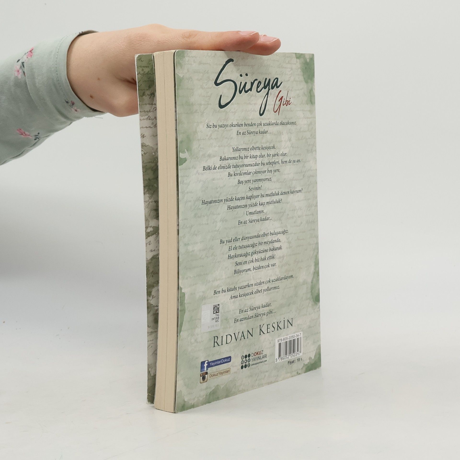 Siz bu yazıyı okurken benden çok uzaklarda olacaksınız.En az Süreya kadar… Yollarımız elbette kesişecek.Bakarsınız bu bir kitap olur, bir şarkı olur.Belki de elinizde tutuyorsunuzdur bu sebepleri, hem de şu an.Bu kıvılcımlar çıkmıyor boş yere,Boş yere yanmıyoruz,Sevinin!Hayatınızın yüzde kaçını kaplıyor bu mutluluk denen kavram?Hayatınızın yüzde kaçı mutluluk?Umutlanın.En az Süreya kadar... Bu yad eller dünyasında elbet buluşacağız.El ele tutuşacağız bir meydanda,Haykıracağız gökyüzüne bakarakSeni en çok biz hak ettik!Biliyorum, bizden çok var. Ben bu kitabı yazarken sizden çok uzaklardayım.Ama kesişecek elbet yollarımız. En az Süreya kadar,En azından Süreya gibi…