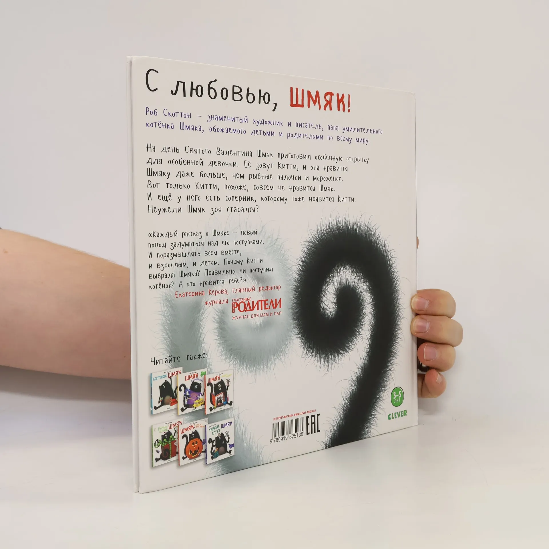 Роб Скоттон - знаменитый художник и писатель, литературный папа умилительного котёнка Шмяка, обожаемого детьми и родителями по всему миру. Книга "С любовью, Шмяк" - это долгожданное продолжение веселых историй и третья книга, наконец изданная и на русском языке. Итак, книга рассказывает о том, как ее герой - Шмяк приготовил особенную открытку для особенной девочки. Её зовут Китти, и она нравится Шмяку даже больше, чем рыбные палочки и мороженое. Вот только Китти, похоже, совсем не нравится Шмяк. И ещё у него есть соперник, которому тоже нравится Китти. Неужели Шмяк зря старался?