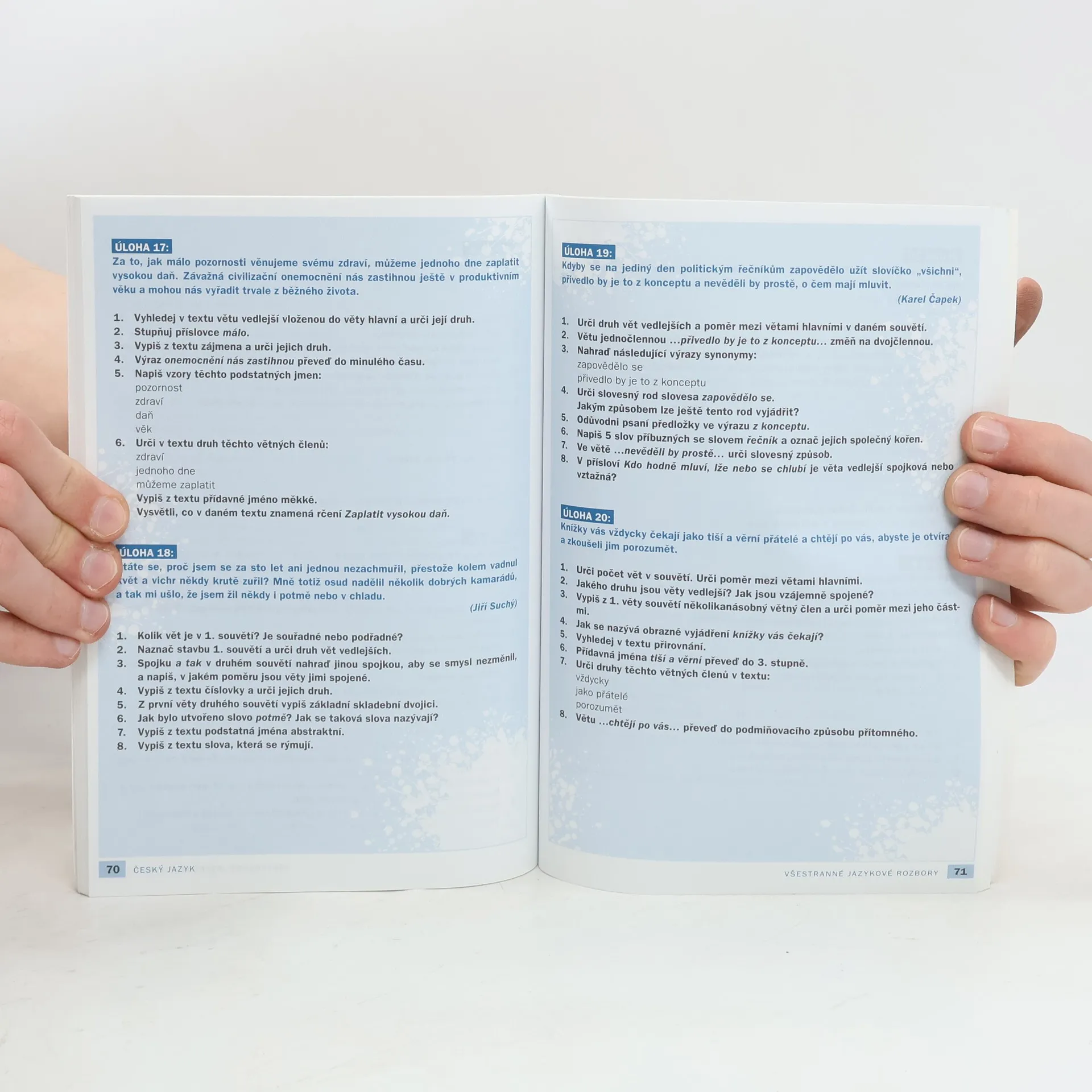 Chcete se dostat na střední školu? Vyzkoušejte si přijímací zkoušky nanečisto. Při procvičování jazykových rozborů, v testu z literatury a v dikátech si ověříte své znalosti z českého jazyka a připravíte se na to, co by vás mohlo u přijímaček nemile zaskočit. Všechny úlohy jsou doplněny správným řešením.