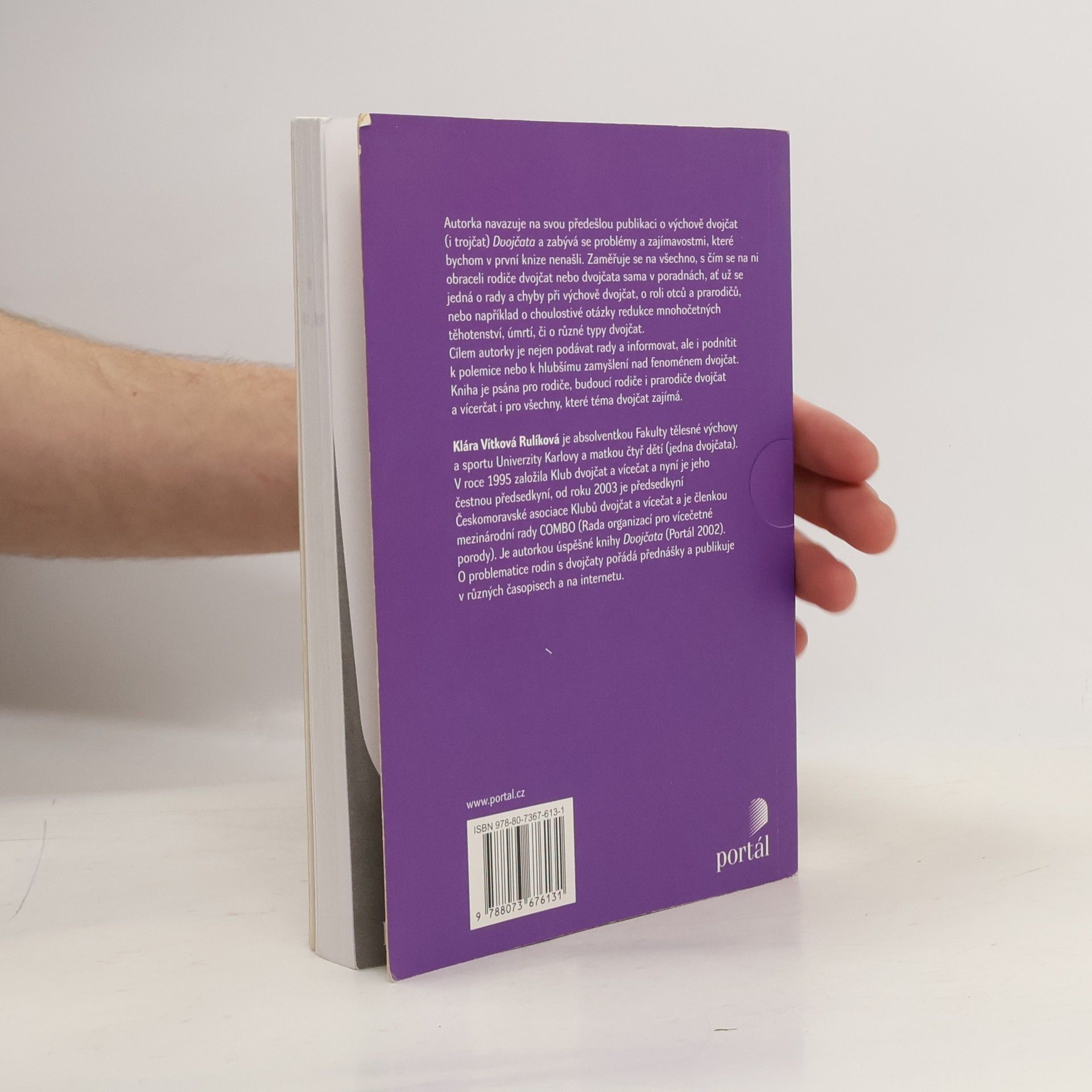 Autorka navazuje na svou předešlou publikaci Dvojčata o vývoji a výchově dvojčat (i trojčat) a zabývá se problémy a zajímavostmi, které v první knize nejsou obsaženy. Zaměřuje se na všechno, s čím se na ni obracela dvojčata nebo jejich rodiče v poradnách, ať už se jedná o rady a chyby při výchově dvojčat, o roli otců a prarodičů, nebo například o choulostivě otázky redukce mnohočetných těhotenství, úmrtí, či o různé typy dvojčat, zvládání puberty u dvojčat a vícerčat apod. Cílem autorky je nejen podávat rady a informovat, ale i podnítit k polemice nebo k hlubšímu zamyšlení nad fenoménem dvojčat. Kniha je psána pro rodiče, budoucí rodiče i prarodiče dvojčat a vícerčat. Klára Vítková Rulíková je absolventkou Fakulty tělesné výchovy a sportu Univerzity Karlovy a matkou čtyř dětí (z toho jedněch dvojčat). V roce 1995 založila Klub dvojčat a vícerčat a je jeho předsedkyní. Je autorkou úspěšné knihy Dvojčata (Portál, 2002). O problematice rodin s dvojčaty pořádá přednášky a publikuje v různých časopisech a na internetu.