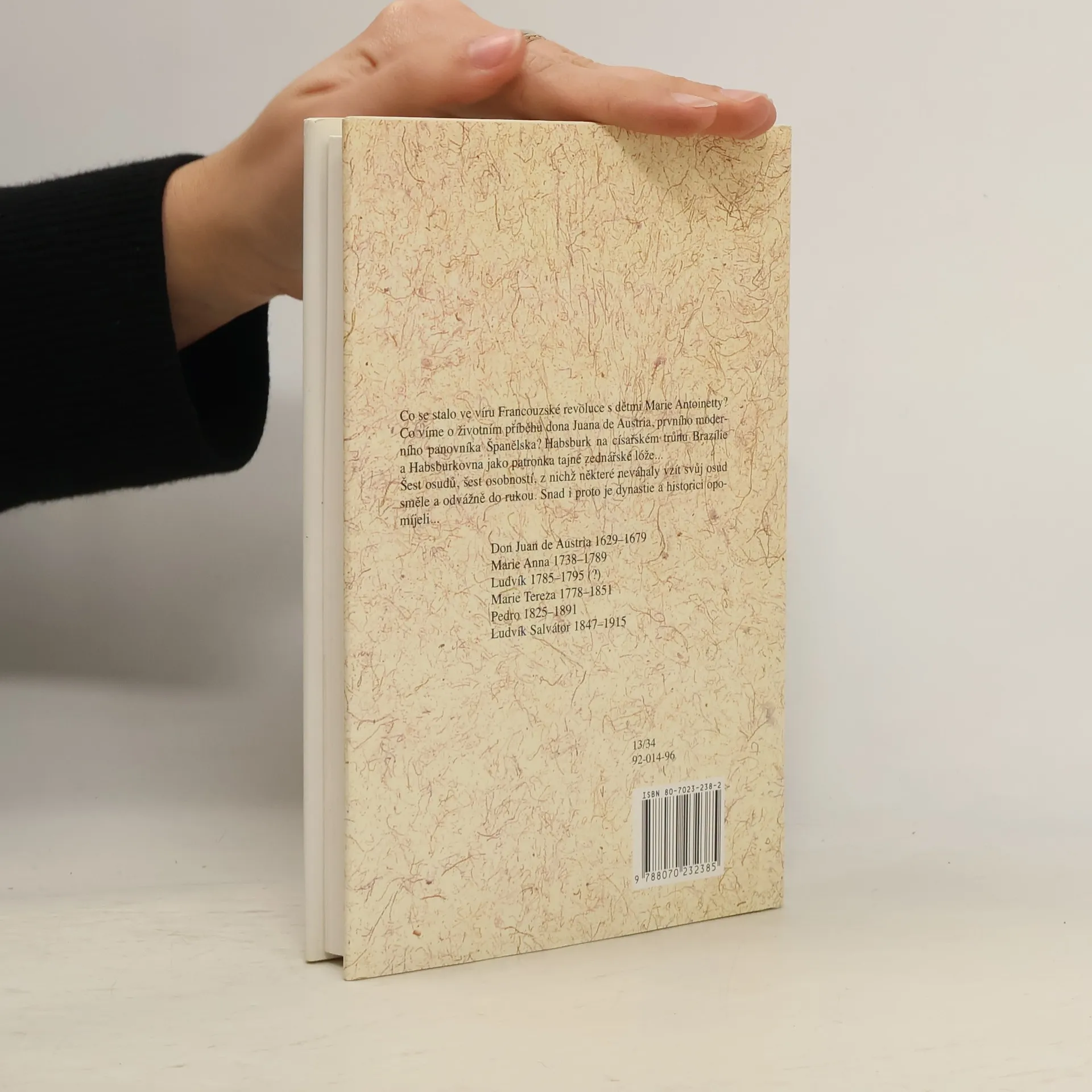 V knize sledujeme osudy dona Juana de Austria, Marie Anny, Ludvíka 17., Marie Terezy a Ludvíka Salvátora.