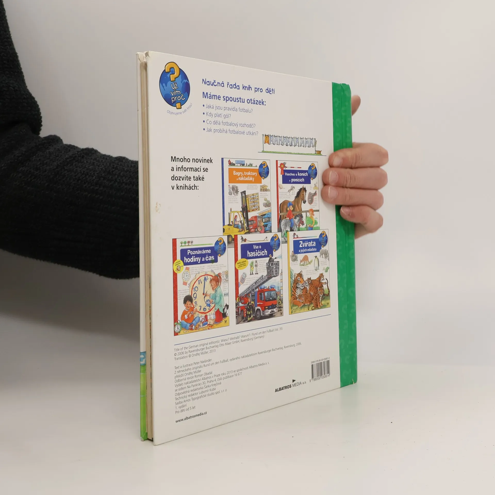 Kdy platí gól? Co dělá fotbalový rozhodčí? Jak probíhá fotbalové utkání? Jaká jsou pravidla fotbalu? Další úspěšná obrázková kniha v edici Už vím proč? Tentokrát především pro kluky, ale doopravdy pro všechny malé sportovce a milovníky fotbalu, kteří nechtějí jen čutat míč, ale chtějí znát přesná pravidla hry. Opět na několika stránkách najde zájemce o fotbal přesné termíny a v ilustracích názorné vysvětlení celé řady otázek.