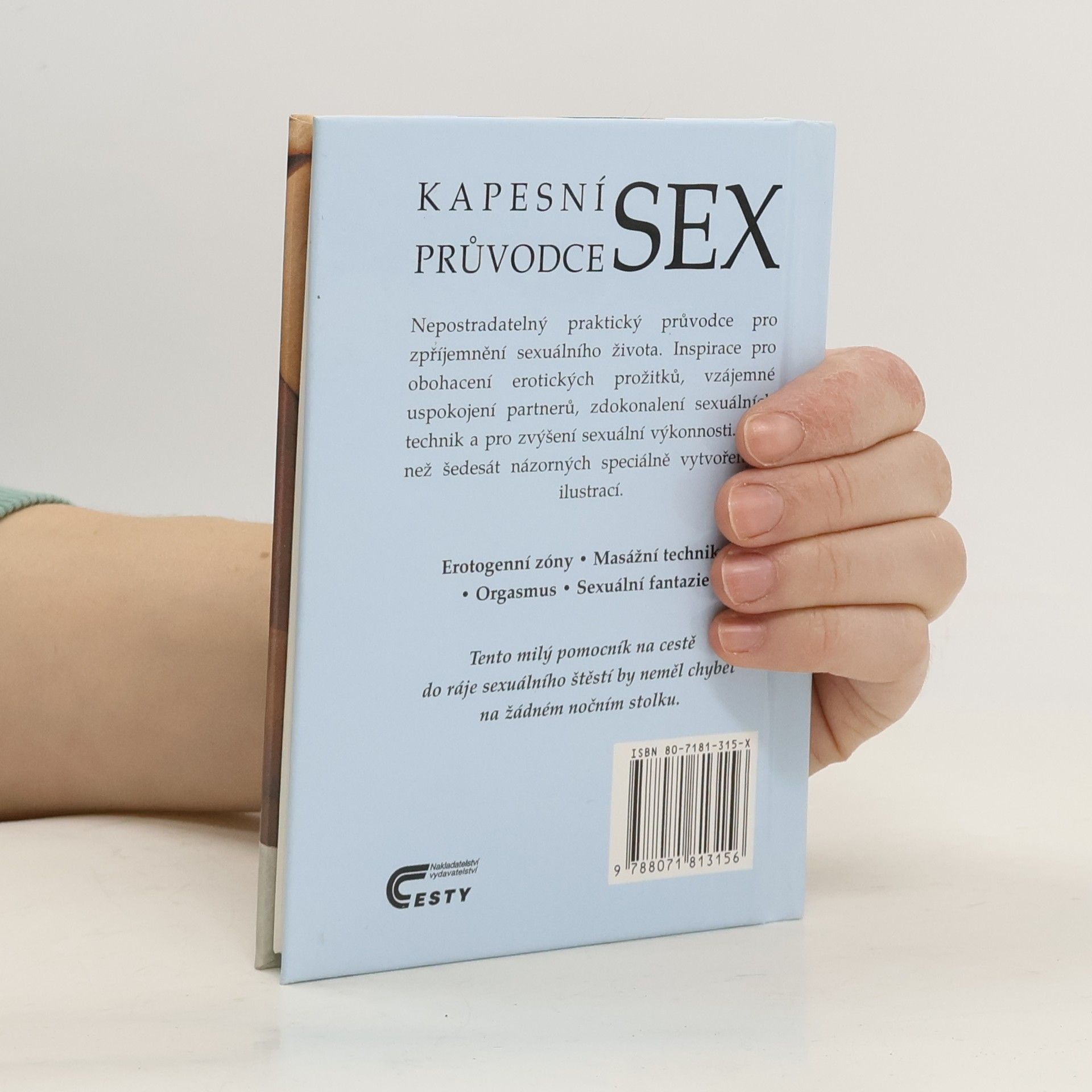 Nepostradatelný praktický průvodce pro zpříjemnění sexuálního života. Inspirace pro obohacení erotických prožitků, vzájemné uspokojení partnerů, zdokonalení sexuálních technik a pro zvýšení sexuální výkonnosti. Více než šedesát názorných speciálně vytvořených ilustrací. Erotogenní zóny - Masážní techniky - Orgasmus - Sexuální fantasie Tento milý pomocník na cestě do ráje sexuálního štěstí by neměl chybět na žádném nočním stolku.