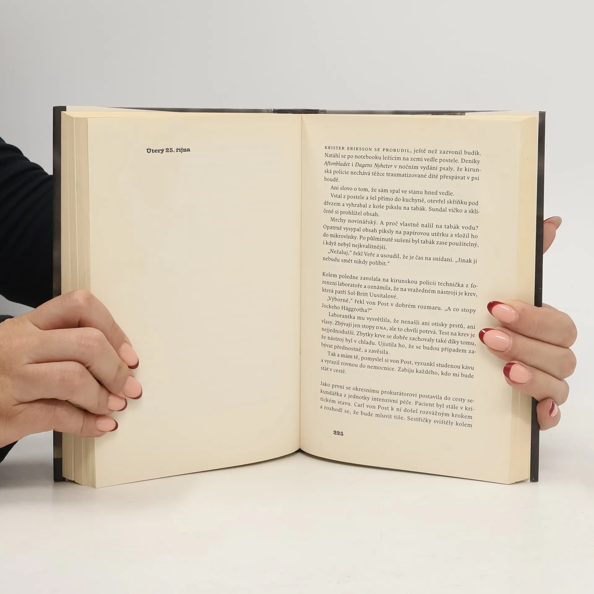 Neohrožená právnička Rebecka Martinssonová se vrací. Muž rozpáral medvědí břicho a zamumlal: „Co to sakra sežral?“ Najednou se vztyčil. Úplně zesinal. V lese se rozhostilo ticho. Nenarušil ho ani vítr, ani ptačí zpěv. Zdálo se dokonce, že les zadržel dech. Lovecká výprava našla v žaludku medvěda lidský palec. Několik měsíců nato je doma zavražděna Sol-Britt Uusitalová. Rebecka Martinssonová a kirunští policisté začínají vyšetřovat případ, který na první pohled vypadá jako vražda ze žárlivosti nebo zášti. Když je Rebecka z případu odvolána a nahrazena protivným prokurátorem Carlem von Postem, rozhodne se vzít si nevybranou dovolenou. Nedokáže Sol-Brittinu vraždu pustit z hlavy, stát stranou a nechat vyrůstat sedmiletého Sol-Brittina vnuka bez rodiny a příbuzných, aniž by se dozvěděl, co se stalo jeho babičce. Spolu s vyšetřováním vraždy a policejní prací vyplouvá na povrch starý příběh Hjalmara Lundbohma, kirunského podnikatele z počátku minulého století, a jeho milostná aféra s krásnou učitelkou Elinou Petterssonovou. Přítomnost je propojena s dávnými událostmi více, než se zdálo.