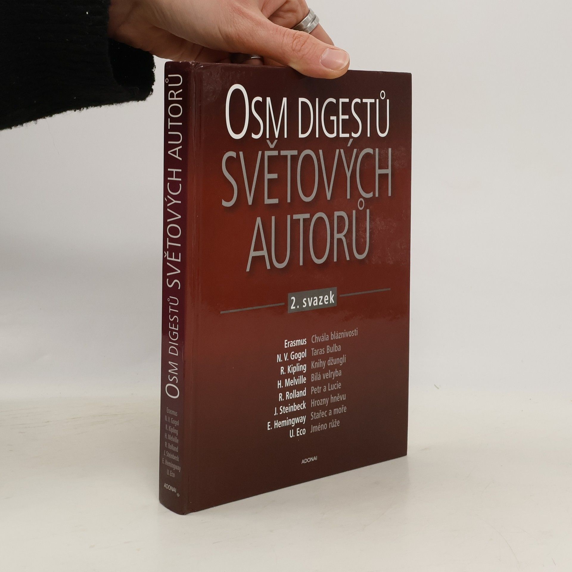 Digesty zpracovali: Hana Horká, Markéta Matoušková, Ladislav Szalai. Chvála bláznivosti / Erasmus, Taras Bulba / N.V. Gogol, Knihy džunglí / R. Kipling, Bílá velryba / H. Melville, Petr a Lucie / R. Rolland, Hrozny hněvu / J. Steinbeck, Stařec a moře / E. Hemingway, Jméno růže / U. Eco.
