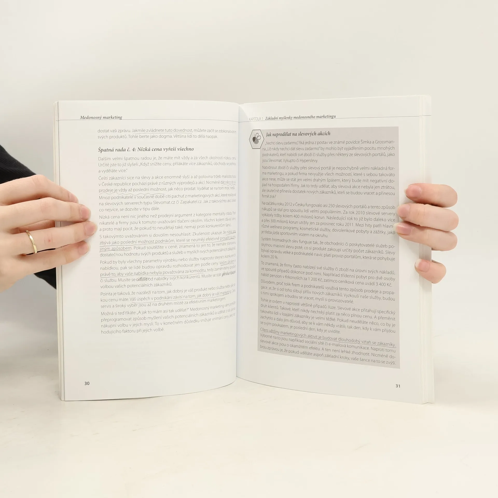 Medonosný marketing je nový přístup k marketingu. V dnešní době obrovské konkurence ve všech oborech a společnosti zahlcené reklamou již nestačí tradiční přístup. V knize jsou popsány metody i nástroje, s jejichž pomocí naleznete zájemce o vaši nabídku a navážete s nimi smysluplnou komunikaci. Ta povede na jedné straně k vyřešení potřeb vašich zákazníků a na druhé straně k tomu, co zajímá vás – tedy k prodejům.