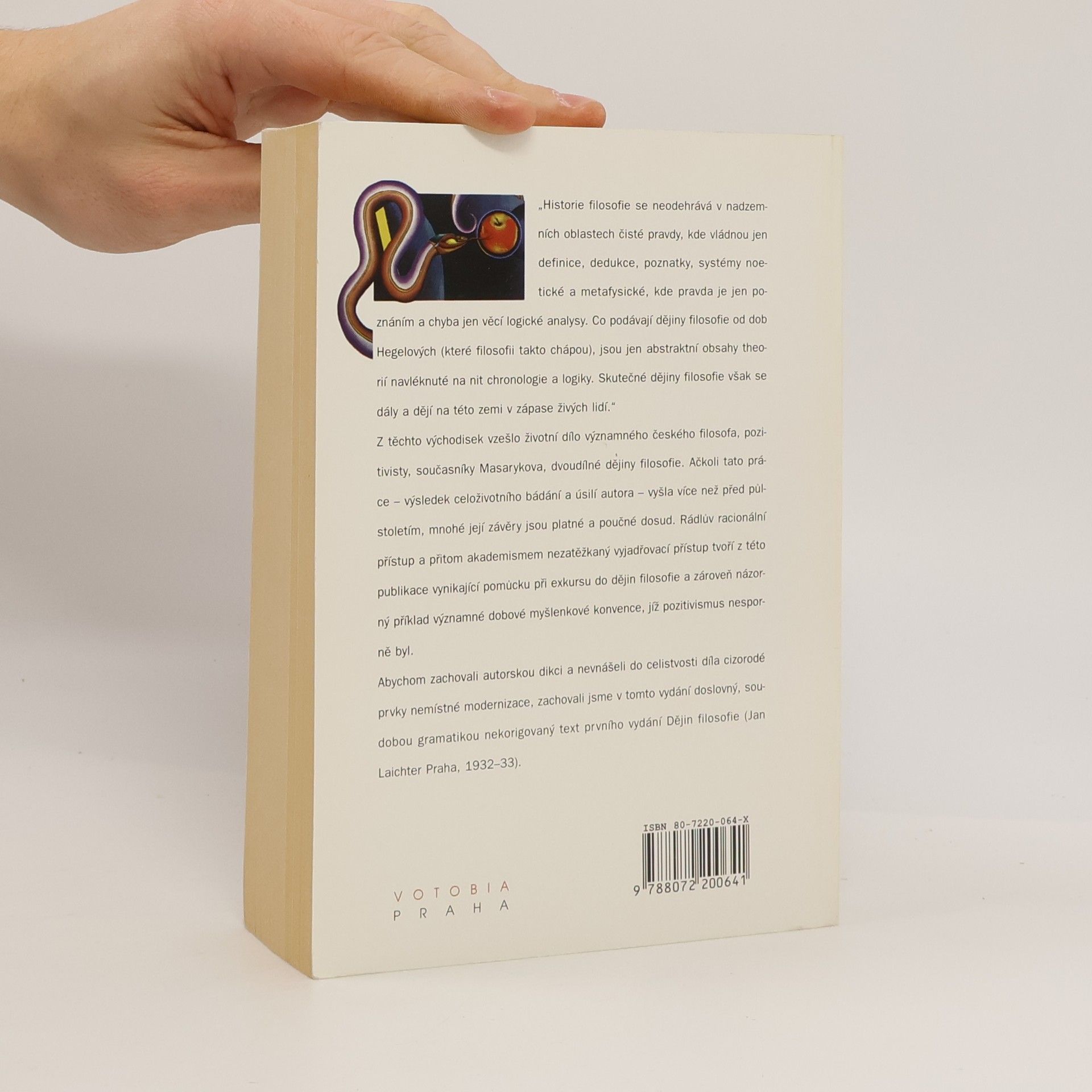 „Historie filosofie se neodehrává v nadzemních oblastech čisté pravdy, kde vládnou jen definice, dedukce, poznatky, systémy noetické a metafysické, kde pravda je jen poznáním a chyba jen věcí logické analysy. Co podávají dějiny filosofie od dob Hegelových (které filosofii takto chápou), jsou jen abstraktní obsahy theorií navléknuté na nit chronologie a logiky. Skutečné dějiny filosofie však se dály a dějí na této zemi v zápase živých lidí.“ Z těchto východisek vzešlo životní dílo významného českého filosofa, pozitivisty, současníky Masarykova, dvoudílné dějiny filosofie. Ačkoli tato práce – výsledek celoživotního bádání a úsilí autora – vyšla více než před půlstoletím, mnohé její závěry jsou platné a poučné dosud. Rádlův racionální přístup a přitom akademismem nezatěžkaný vyjadřovací přístup tvoří z této publikace vynikající pomůcku při exkursu do dějin filosofie a zároveň názorný přiklad významné dobové myšlenkové konvence, jíž pozitivismus nesporně byl. Abychom zachovali autorskou dikci a nevnášeli do celistvosti díla cizorodé prvky nemístné modernizace, zachovali jsme v tomto vydání doslovný, soudobou gramatikou nekorigovaný text prvního vydání Dějin filosofie (Jan Laichter Praha, 1932–33).