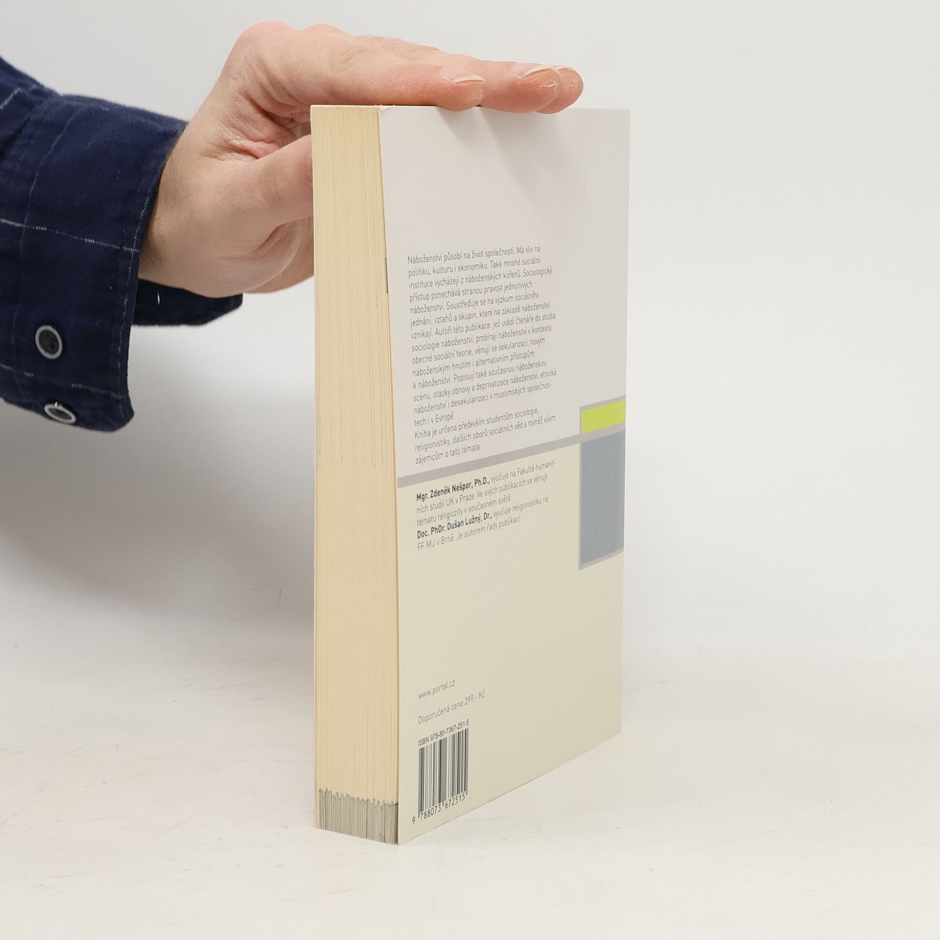 Náboženství působí na život společnosti. Má vliv na politiku, kulturu i ekonomiku. Také mnohé sociální instituce vycházejí z náboženských kořenů. Sociologický přístup ponechává stranou pravost jednotlivých náboženství. Soustředí se na výzkum sociálního jednání, vztahů a skupin, které na základě náboženství vznikají. Tato publikace uvádí čtenáře do studia sociologie náboženství. Autoři probírají náboženství v kontextu obecné sociální teorie, věnují se sekularizaci, novým náboženským hnutím i alternativním přístupům k náboženství. Popisují také současnou náboženskou scénu, otázky obnovy a deprivatizace náboženství, etnická náboženství i desekularizaci v muslimských společnostech i v Evropě. Kniha je určena především studentům religionistiky, sociologie a dalších oborů sociálních věd.