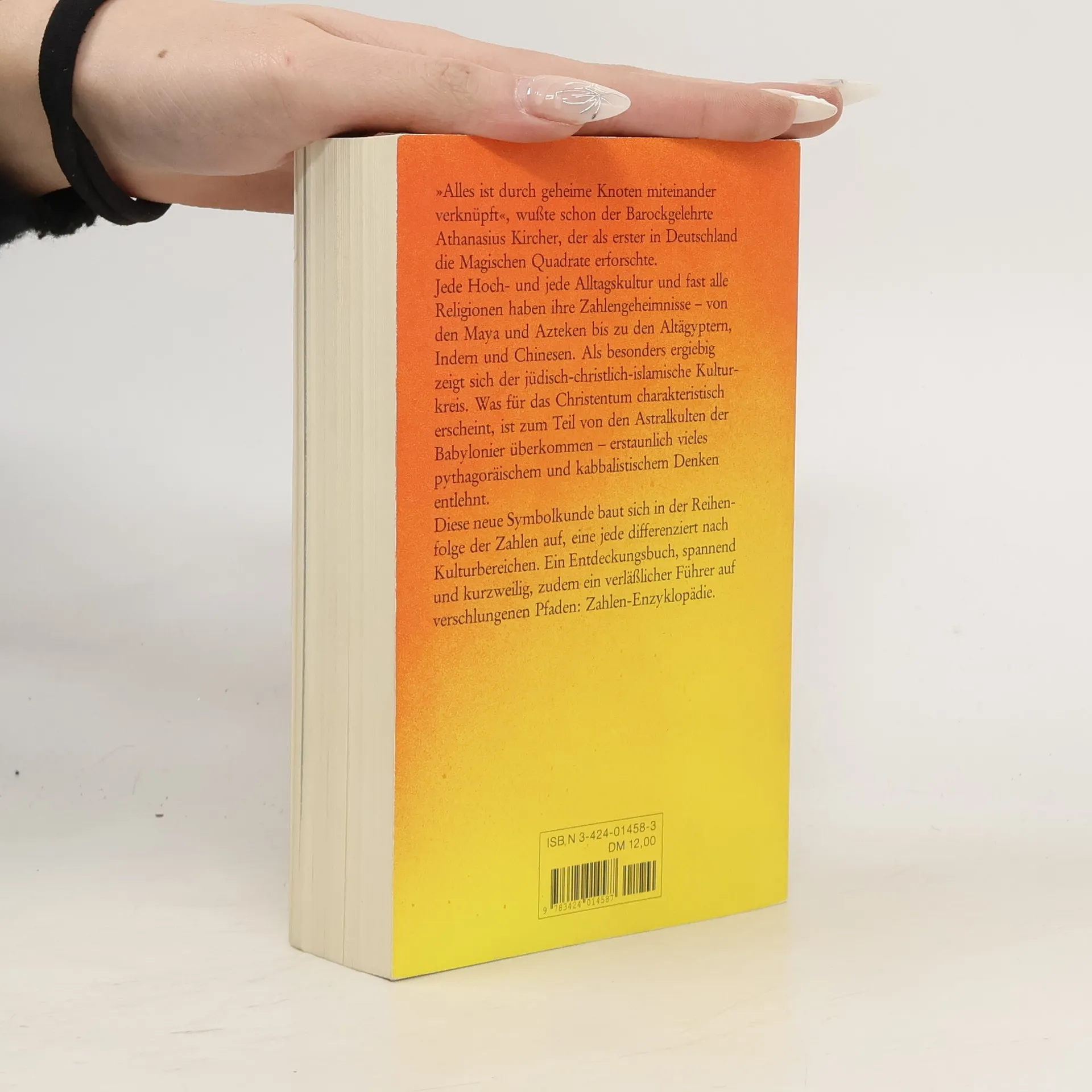 "Alles ist durch geheime Knoten miteinander verknüpft", wusste schon der Barockgelehrte Athanasius Kircher, der als erster in Deutschland die Magischen Quadrate erforschte. Jede Hoch- und jede Alltagskultur und fast alle Religionen haben ihre Zahlengeheimnisse - von den Maya und Azteken bis zu den Altägyptern, Indern und Chinesen. Als besonders ergiebig zeigt sich der jüdisch-christlich-islamische Kulturkreis. Was für das Christentum charakteristisch erscheint, ist z.T. von den Astralkulturen der Babylonier überkommen; erstaunlich vieles ist pythagoräischem und kabbalistischem Denken entlehnt. Diese neue Symbolkunde baut sich in der Reihenfolge der Zahlen auf, eine jede differenziert nach Kulturbereichen. Ein Entdeckungsbuch, spannend und kurzweilig, zudem ein verläßlicher Führer auf verschlungenen Pfaden: Zahlen-Enzyklopädie.