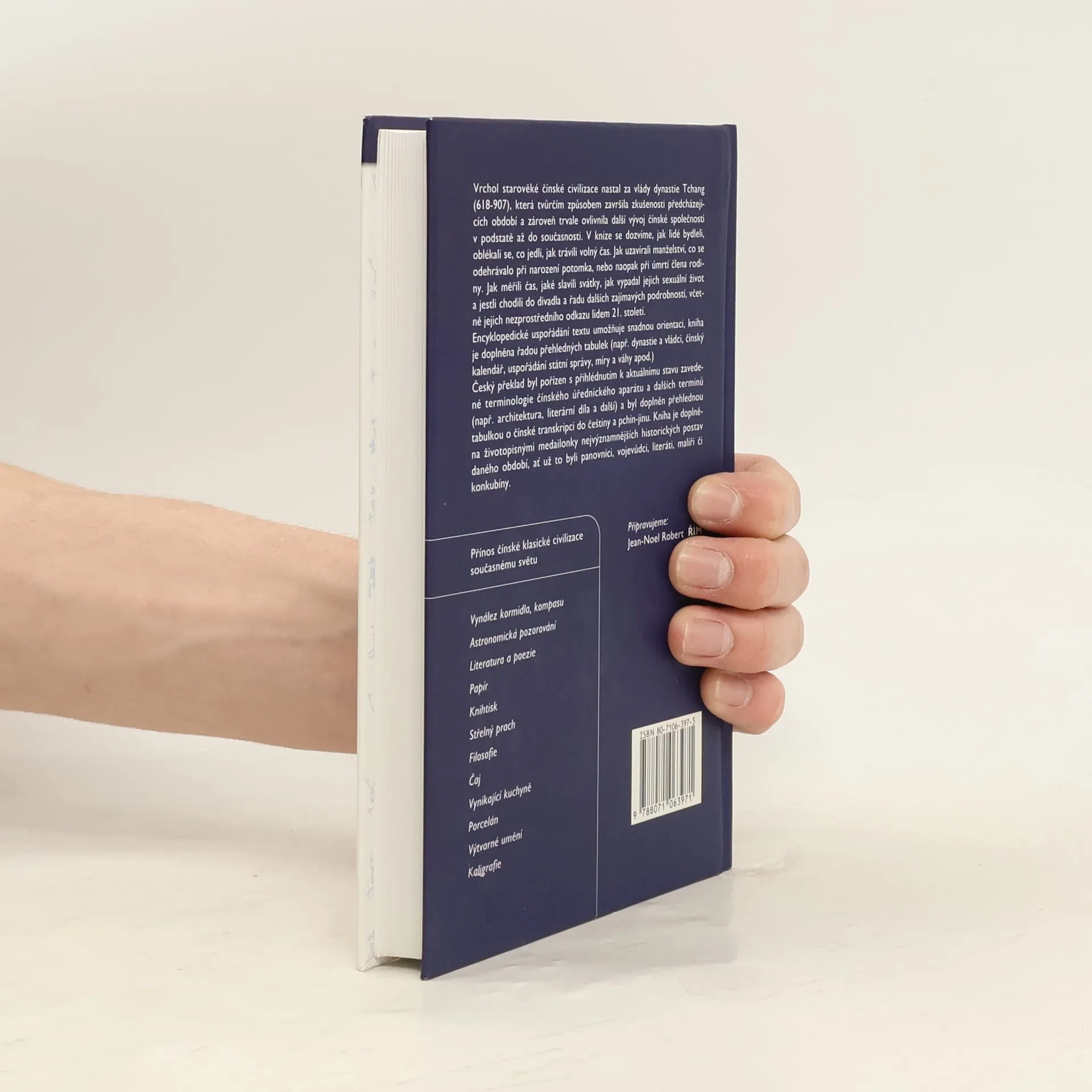 Vrchol starověké čínské civilizace nastal za vlády dynastie Tchang (618-907), která tvůrčím způsobem završila zkušenosti předcházejících období a zároveň trvale ovlivnila další vývoj čínské společnosti v podstatě až do současnosti. Encyklopedické uspořádání textu umožňuje snadnou orientaci, kniha je doplňena řadou přehledných tabulek (např. dynastie a vládci, čínský kalendář, uspořádání státní správy, míry a váhy apod.)Kniha je doplněna životopisnými medailonky nejvýznamnějších historických postav daného období, ať už to byli panovníci, vojevůdci, literáti, malíři či konkubíny.
