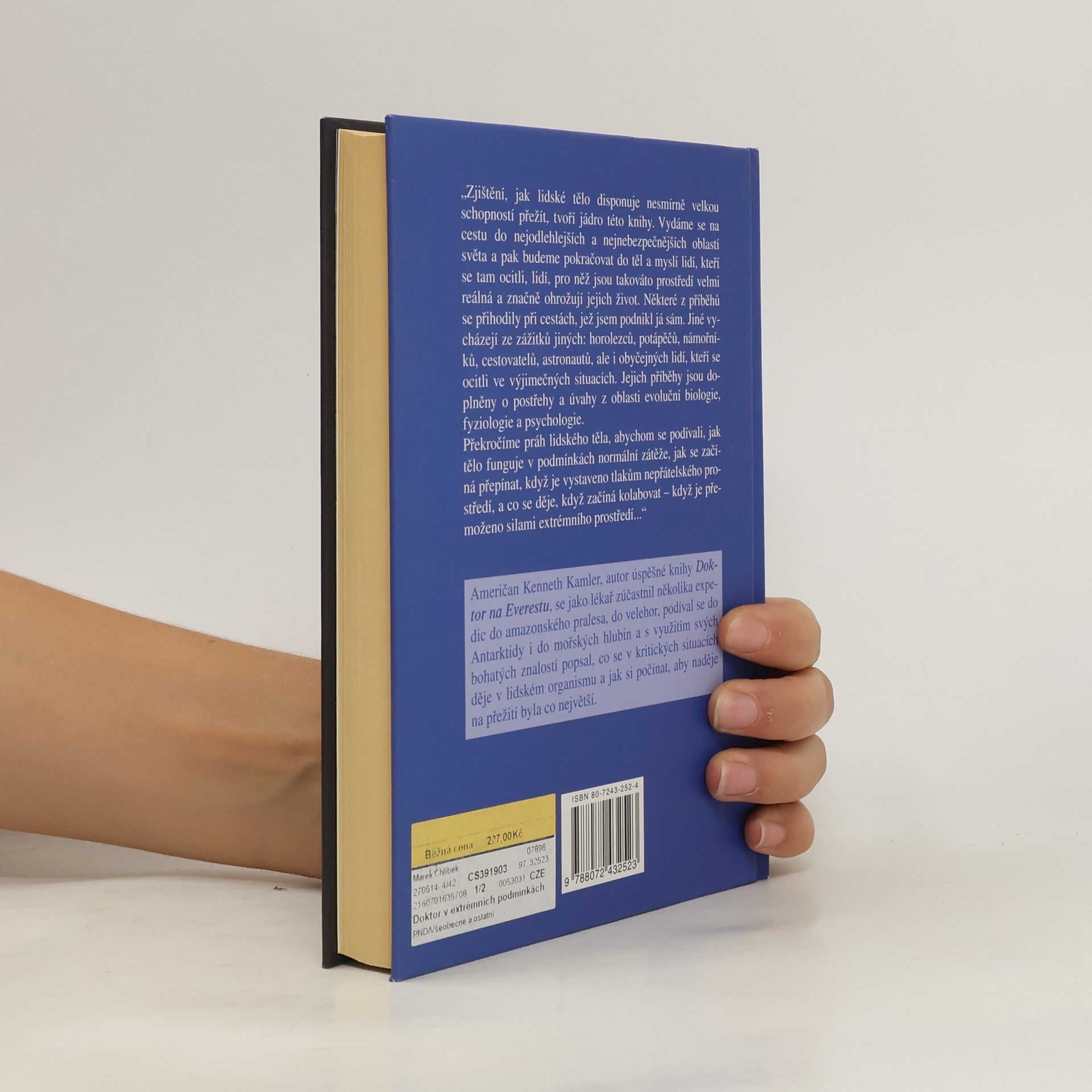 Zjištění, jak lidské tělo disponuje nesmírně velkou schopností přežít, tvoří jádro této knihy. Američan Kenneth Kamler se jako lékař zúčastnil několika expedic do amazonského pralesa, do velehor, podíval se do Antarktidy i do mořských hlubin a s využitím svých bohatých znalostí popsal, co se v kritických situacích děje v lidském organismu a jak si počínat, aby naděje na přežití byla co největší. Vydejte se na cestu do nejodlehlejších a nejnebezpečnějších oblastí světa a pak pokračujte do těl a myslí lidí, kteří se tam ocitli, lidí, pro něž jsou takováto prostředí velmi reálná a značně ohrožují jejich život. Některé z příběhů se přihodily při cestách, jež podnikl autor sám. Jiné vycházejí ze zážitků jiných: horolezců, potápěčů, námořníků, cestovatelů, astronautů, ale i obyčejných lidí, kteří se ocitli ve výjimečných situacích. Jejich příběhy jsou doplněny o postřehy a úvahy z oblasti evoluční biologie, fyziologie a psychologie. Překročte práh lidského těla, abyste se podívali, jak tělo funguje v podmínkách normální zátěže, jak se začíná přepínat, když je vystaveno tlakům nepřátelského prostředí, a co se děje, když začíná kolabovat - když je přemoženo silami extrémního prostředí...