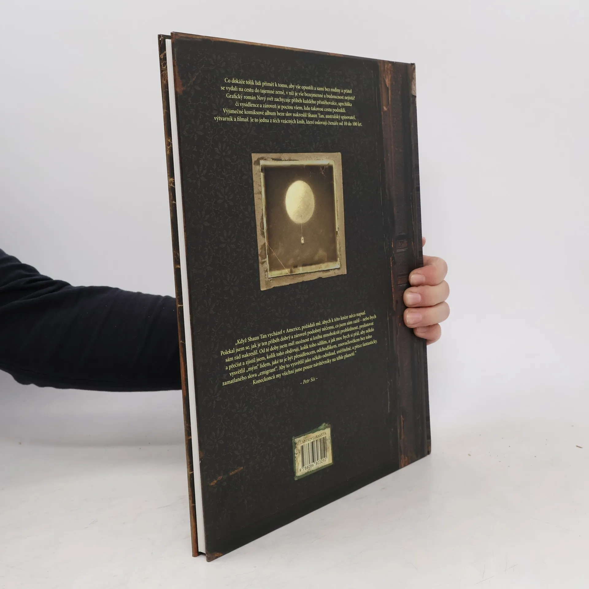 Výjimečné komiksové album beze slov. Co dokáže tolik lidí přimět k tomu, aby vše opustili a sami bez rodiny a přátel se vydali na cestu do tajemné země, v níž je vše bezejmenné a budoucnost nejistá? Grafický román zachycuje příběh každého přistěhovalce, uprchlíka či vysídlence a zároveň je poctou všem, kdo takovou cestu podnikli. Jedna z těch vzácných knih, které oslovují čtenáře od 10 do 100 let.