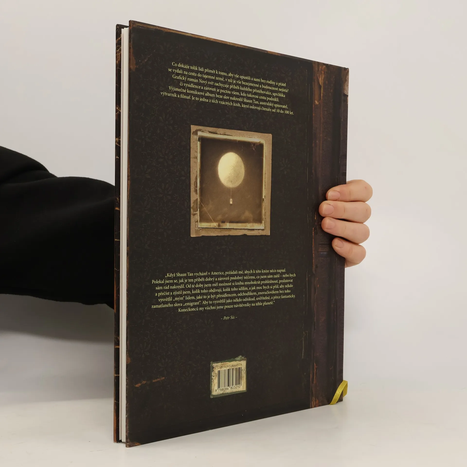 Výjimečné komiksové album beze slov. Co dokáže tolik lidí přimět k tomu, aby vše opustili a sami bez rodiny a přátel se vydali na cestu do tajemné země, v níž je vše bezejmenné a budoucnost nejistá? Grafický román zachycuje příběh každého přistěhovalce, uprchlíka či vysídlence a zároveň je poctou všem, kdo takovou cestu podnikli. Jedna z těch vzácných knih, které oslovují čtenáře od 10 do 100 let.