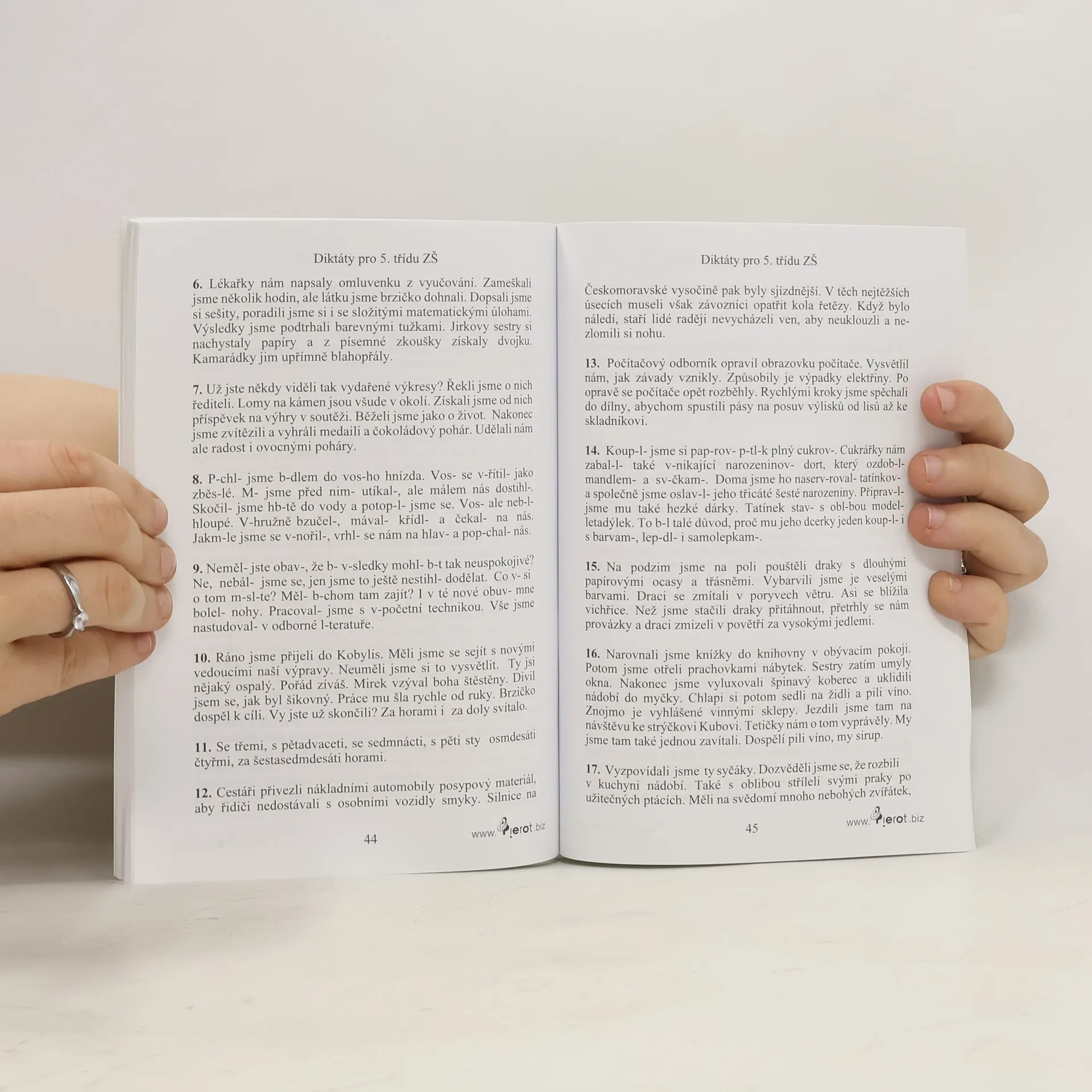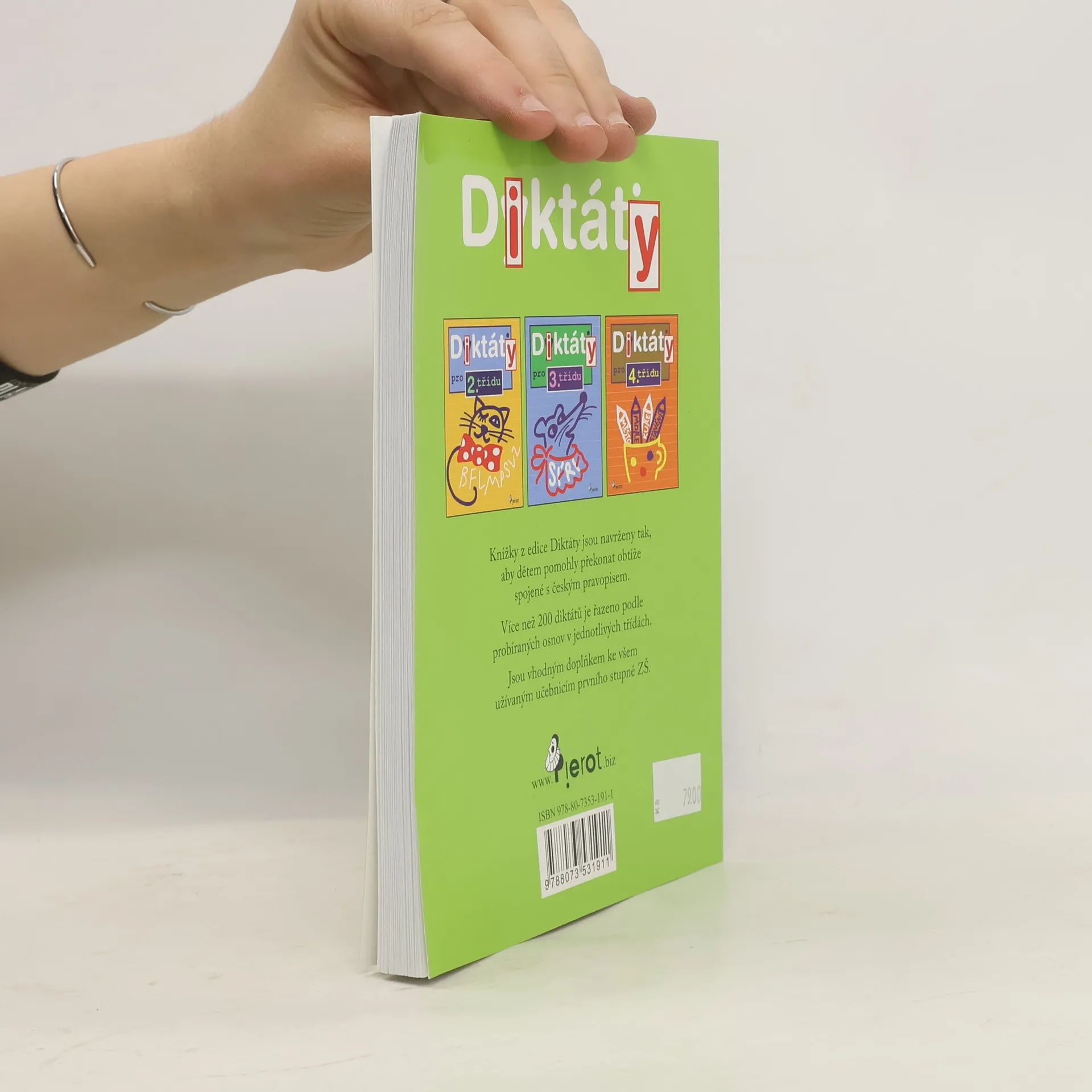 Tato publikace obsahuje více než 200 diktátů určených zejména pro domácí procvičování základních gramatických jevů a překonání obtíží spojených s českým pravopisem. Kniha je vhodným doplňkem ke všem užívaným učebnicím prvního stupně a její jednotlivá cvičení jsou řazena podle obtížnosti i podle osnov základních škol. Její součástí je samozřejmě klíč pro kontrolu správnosti a vyhodnocení vašich výsledků. Tento velice úspěšný titul se dočkal již své páté reedice.