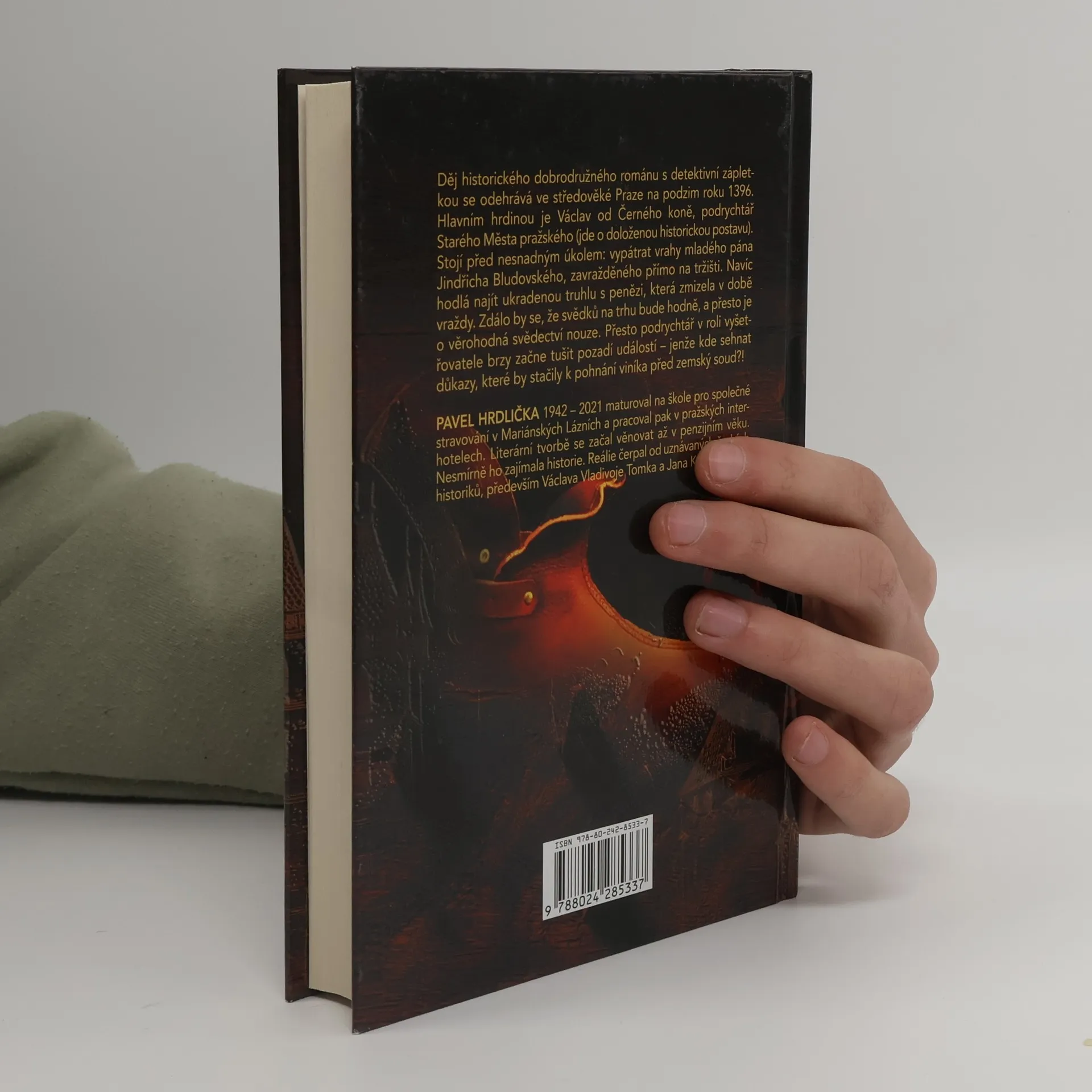 Historický dobrodružný román s detektivní zápletkou ze středověké Prahy roku 1396. Hlavním hrdinou je Václav od Černého koně (doložená historická postava), podrychtář Starého města pražského, který stojí před nesnadným úkolem vypátrat vrahy mladého pána Jindřicha Bludovského, zavražděného přímo na tržišti. Navíc hodlá najít ukradenou truhlu s penězi velkokupce Ebrlína, která zmizela v době vraždy. Zdálo by se, že svědků na trhu bude hodně, a přesto je o věrohodná svědectví nouze. Ale i tak podrychtář v roli vyšetřovatele brzy začne tušit pozadí událostí. Kde však sehnat důkazy, které by stačily k pohnání viníka před zemský soud? O nebývalé starosti má tedy Václav postaráno, zvlášť když čelí stálým nesvárům staroměstských občanů, v opuštěném domě u hřbitova straší a každou chvilku přispěje svou troškou do mlýna i Václavova manželka...
