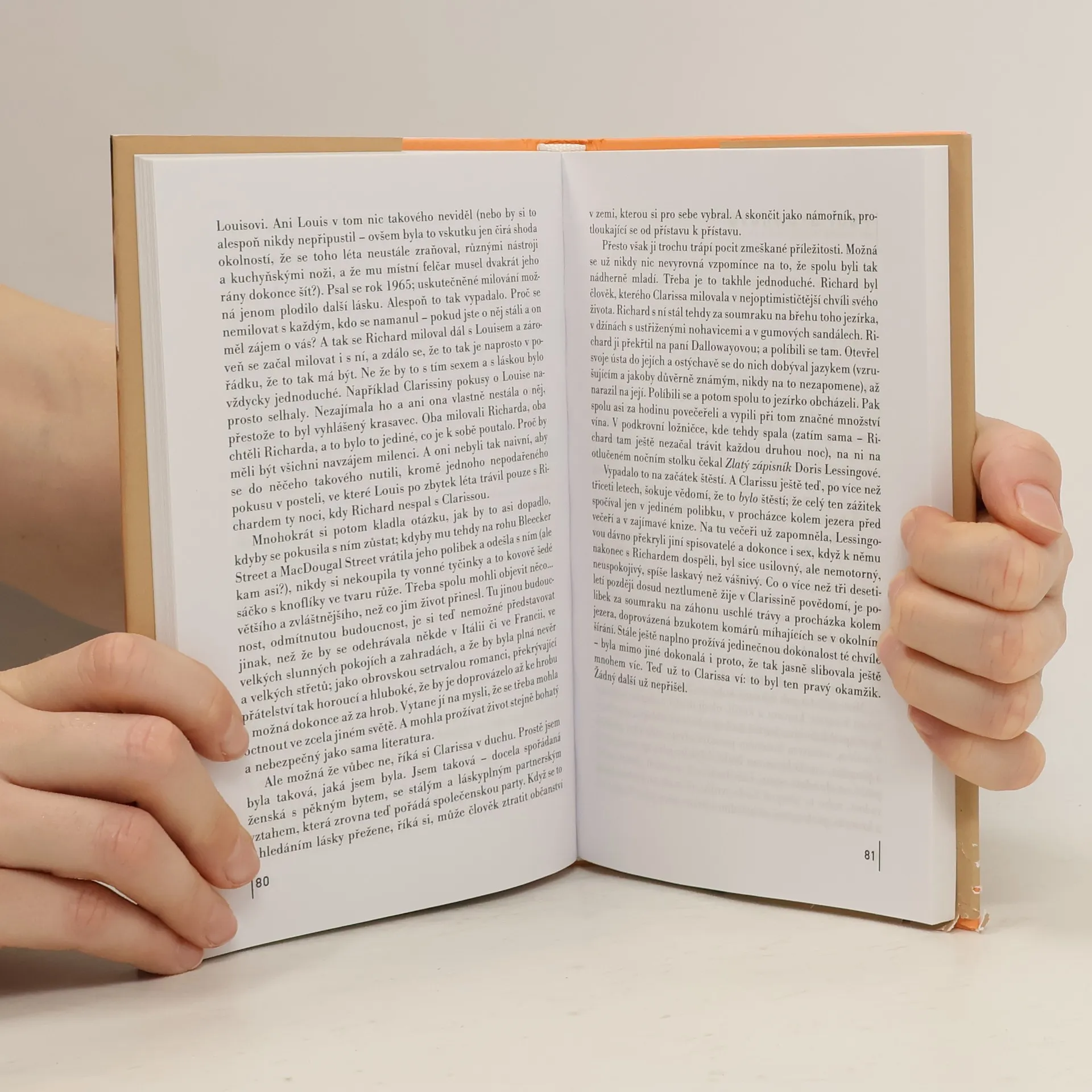 Román je do jisté míry poctou modle literárního modernismu, anglické spisovatelce V. Woolfové. První příběh je totiž střípkem ze života autorky v době její nemoci a líčí i její sebevraždu. Druhý uvádí na scénu Lauru, která si po druhé světové válce "prostě musí" vzít mladíka, jenž se jako hrdina vrátil z Tichomoří - s vražednou upřímností se snaží v typickém stereotypu americké nepracující ženy padesátých let nalézt životní štěstí. Třetí a hlavní rovinou je den v životě Clarissy, lesbičky a majitelky nakladatelství, která pořádá večírek pro svého přítele, homosexuála v pokročilém stadiu AIDS… Je to kniha o umírání a bezmoci, ale také o ohleduplnosti a lásce, o tom, že člověk může být často hluboce nešťasten, a přesto dokáže najít i okamžiky štěstí.... celý text