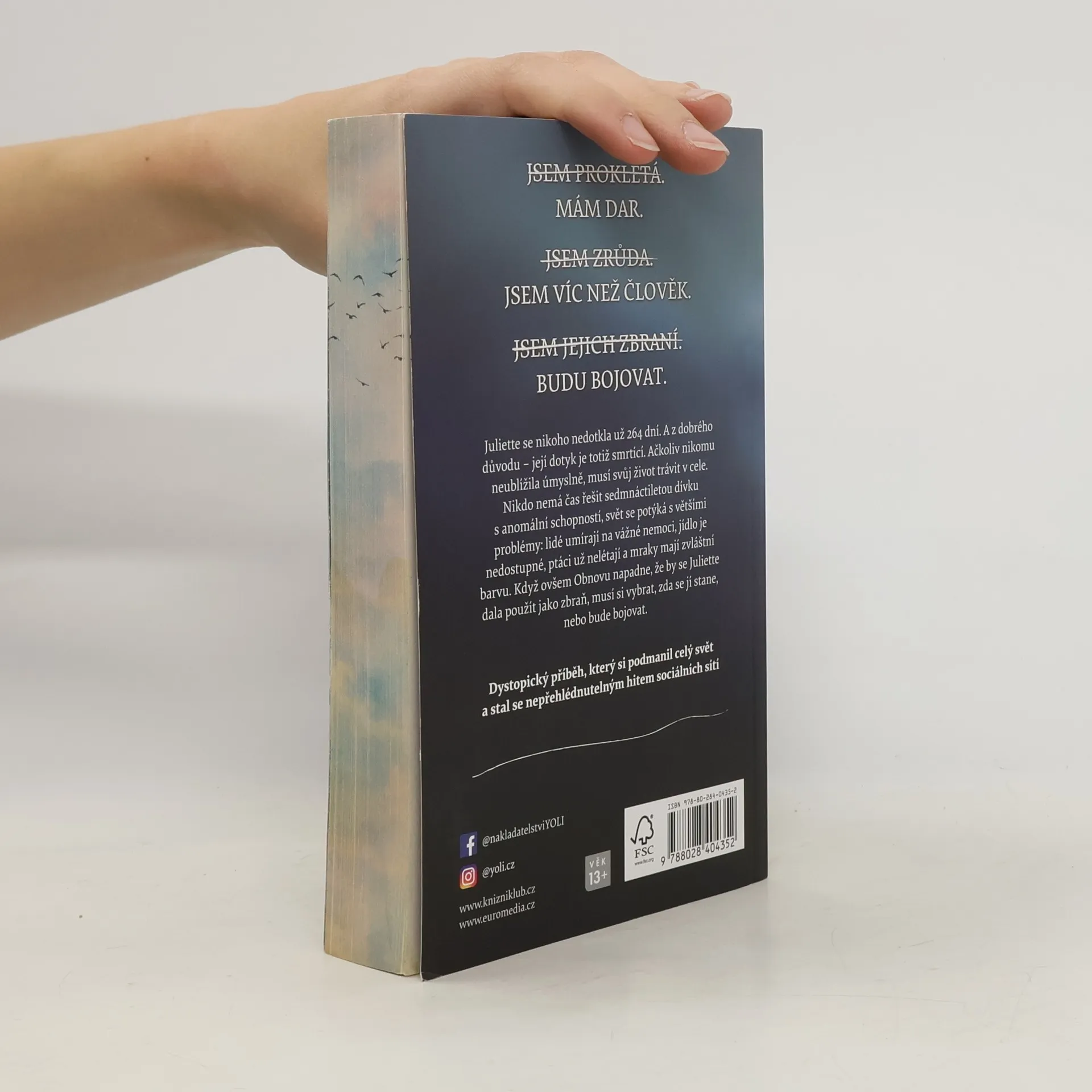 Juliette se nikoho nedotkla už 264 dní. A z dobrého důvodu – její dotyk je totiž smrtící. Ačkoliv nikomu neublížila úmyslně, musí nyní trávit svůj život v cele. Nikdo totiž nemá čas řešit sedmnáctiletou dívku s anomální schopností, svět se potýká s většími problémy – lidé umírají na vážné nemoci, jídlo je nedostupné, ptáci už nelétají a mraky mají zvláštní barvu. Když ovšem Obnovu napadne, že by se Juliette dala použít jako zbraň, musí si vybrat: zda se jí stane, nebo bude bojovat. Doporučený věk 13+