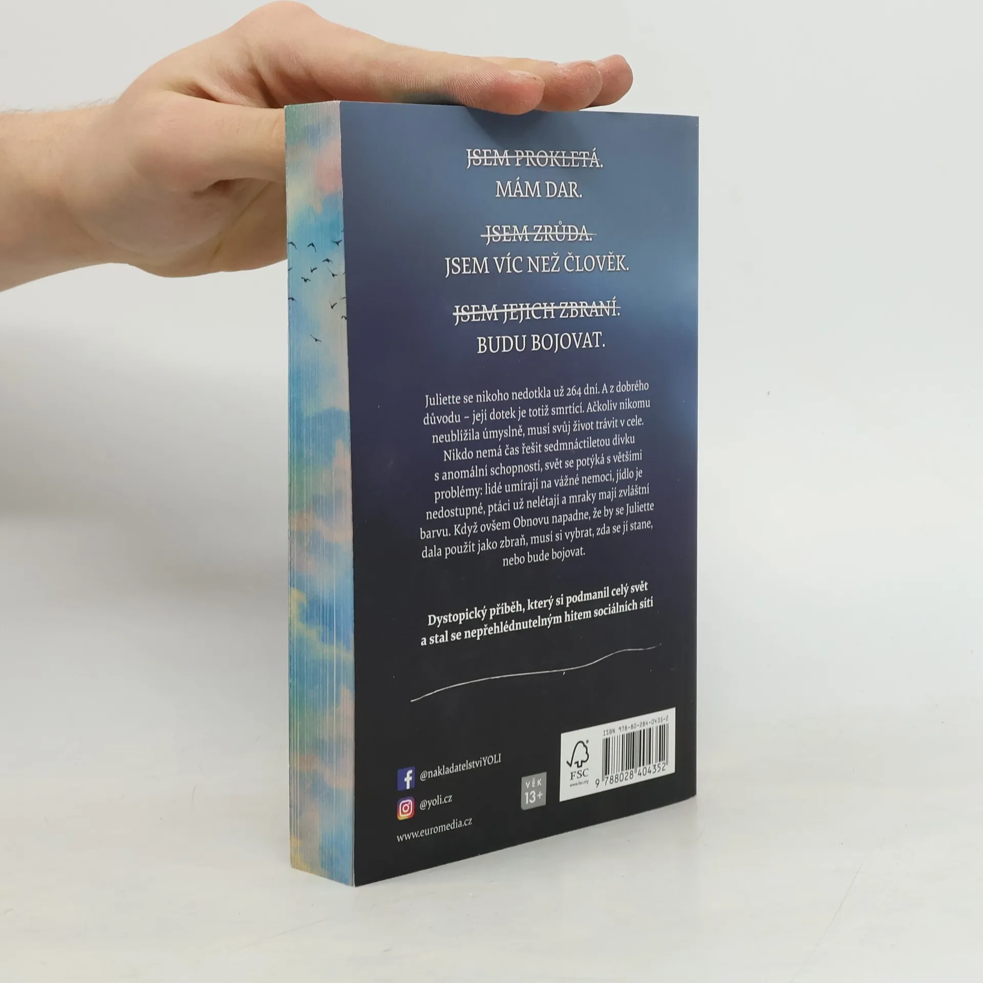 Juliette se nikoho nedotkla už 264 dní. A z dobrého důvodu – její dotyk je totiž smrtící. Ačkoliv nikomu neublížila úmyslně, musí nyní trávit svůj život v cele. Nikdo totiž nemá čas řešit sedmnáctiletou dívku s anomální schopností, svět se potýká s většími problémy – lidé umírají na vážné nemoci, jídlo je nedostupné, ptáci už nelétají a mraky mají zvláštní barvu. Když ovšem Obnovu napadne, že by se Juliette dala použít jako zbraň, musí si vybrat: zda se jí stane, nebo bude bojovat. Doporučený věk 13+
