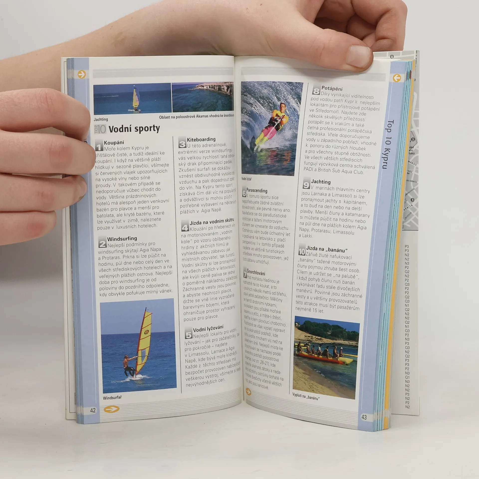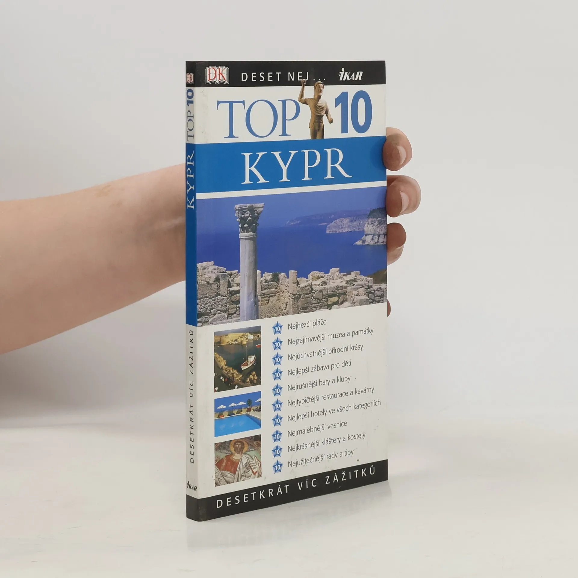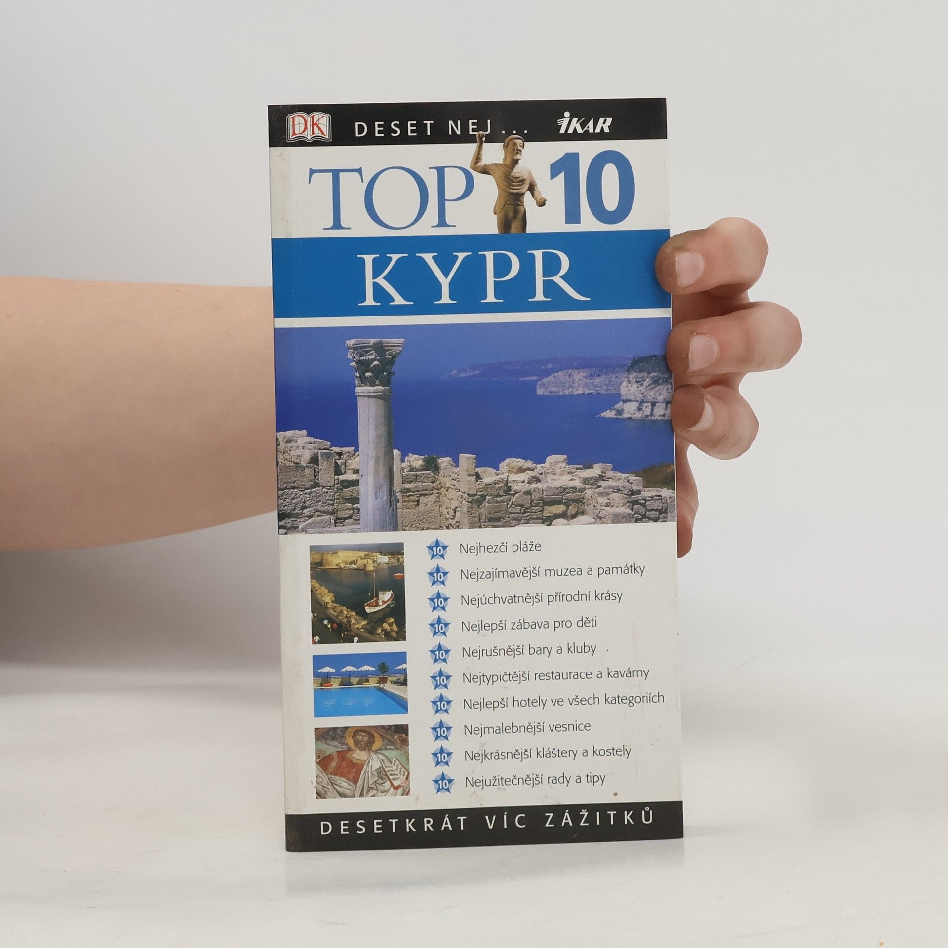 Turistické, kulturní a sportovní vyžití na Kypru. Rozděleno a blíže zaměřeno na 5 oblastí: střední, severní, jihovýchodní, jihozápadní a pohoří Troodos. Průvodce obsahuje přehled deseti nejkrásnějších míst na Kypru. Co se kultury a turistického vyžití týče, průvodce nabízí muzea, galerie, pamětihodnosti, pláže, turistické stezky, vodní sporty a další. Podrobně je popisováno několik oblastí Kypru. Obsahuje i možnosti ubytování v různých lokalitách od luxusních hotelů až po penziony.