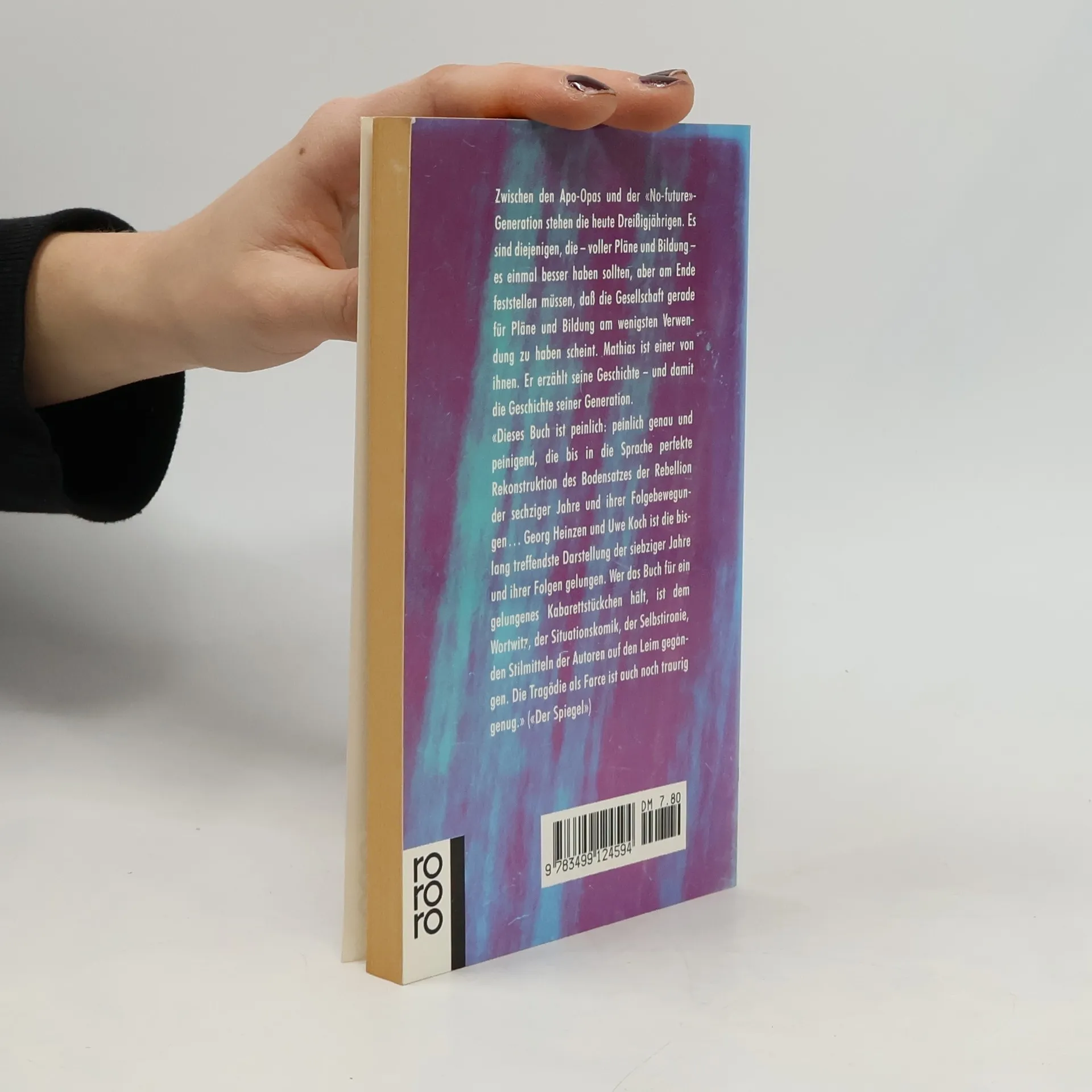 Zwischen den Apo-Opas und der "No-future"-Generation stehen die heute Dreißigjährigen. Es sind diejenigen, die - voller Pläne und Bildung - es einmal besser haben sollten, aber am Ende feststellen müssen, dass die Gesellschaft gerade für Pläne und Bildung am wenigsten Verwendung zu haben scheint. Mathias ist einer von ihnen. Er erzählt seine Geschichte - und damit die Geschichte seiner Generation.