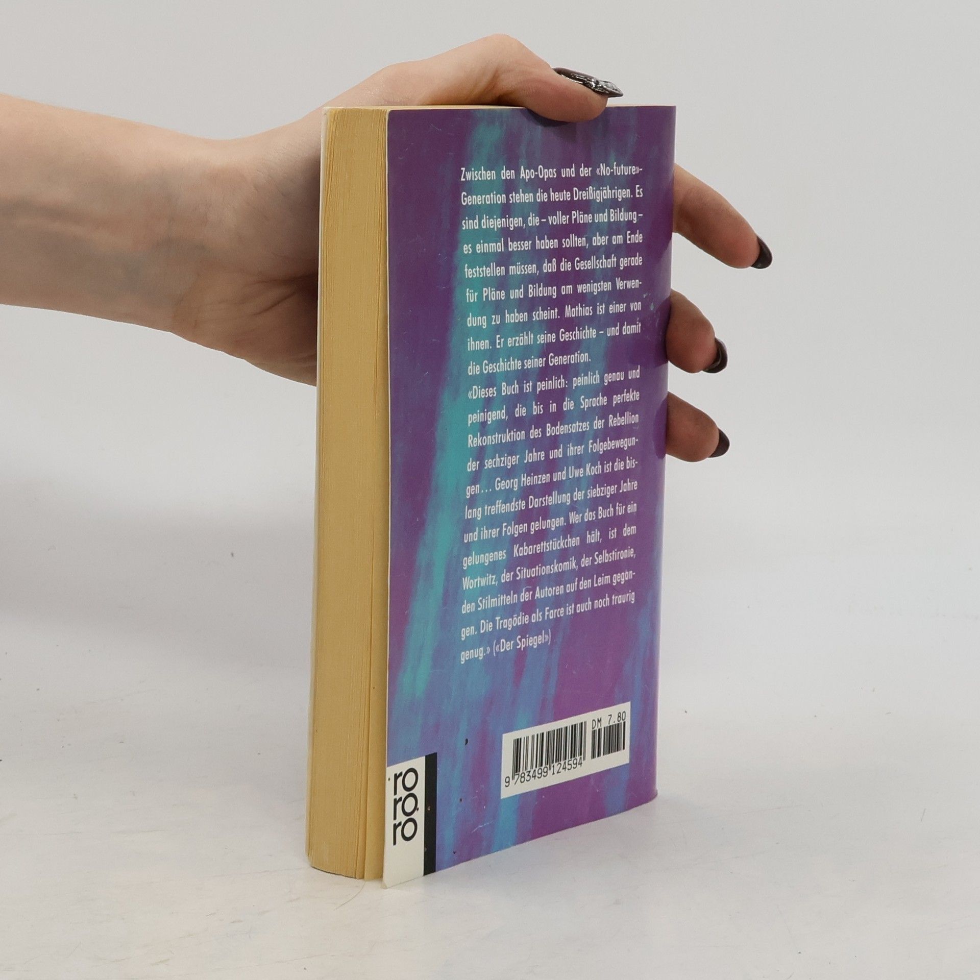 Zwischen den Apo-Opas und der "No-future"-Generation stehen die heute Dreißigjährigen. Es sind diejenigen, die - voller Pläne und Bildung - es einmal besser haben sollten, aber am Ende feststellen müssen, dass die Gesellschaft gerade für Pläne und Bildung am wenigsten Verwendung zu haben scheint. Mathias ist einer von ihnen. Er erzählt seine Geschichte - und damit die Geschichte seiner Generation.