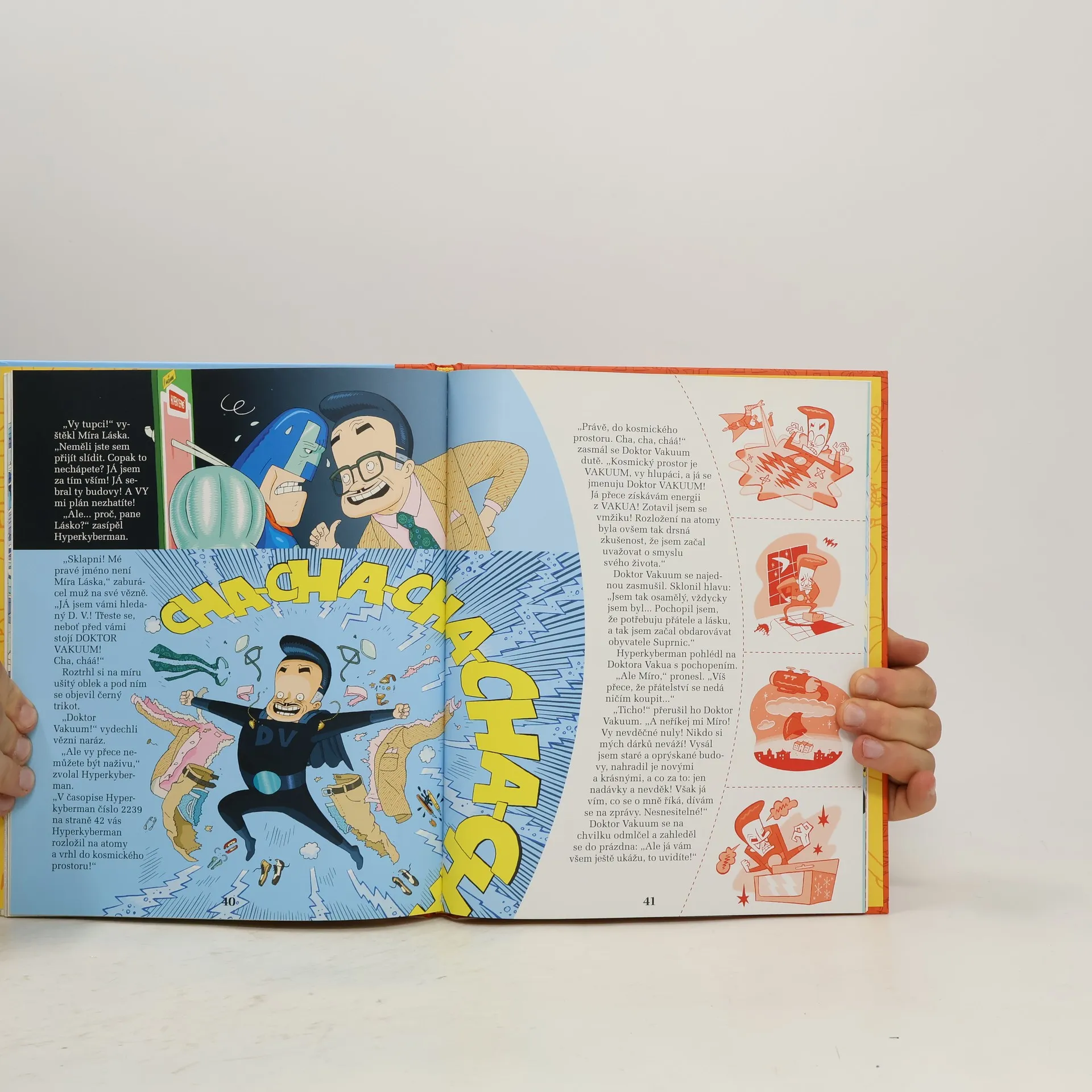 „Bylo by úžasné být superhrdina!“ zasní se Tatu a Patu, když čtou o Hyperkybermanových báječných dobrodružstvích. A co se nestane, CVAK! Pomocí teleaktivního laserového paprskovače se prachobyčejní kluci z Podivína promění v Aktivátora a Metrmana. Malí hrdinové se hned pustí do boje se superzloduchy a nepravostmi a vydají se zbavit město Suprnice obřích balení, která ochromila život jeho obyvatel. Tatu a Patu jsou bratři, kteří se někdy chovají trochu podivně. Není divu, vždyť jsou z Podivína, kde se věci dělají jinak než u nás. Vždy však spolu zažijí - a čtenář s nimi - úžasná dobrodružství. Velmi úspěšná série o dvou klucích, kterou vytvořili rukou společnou a nerozdílnou finští autoři Aino Havukainenová a Sami Toivonen, získala nejen řadu ocenění, ale především zájem malých čtenářů už ve více než dvaceti zemích světa a nyní se poprvé představuje v první knize i českým dětem.