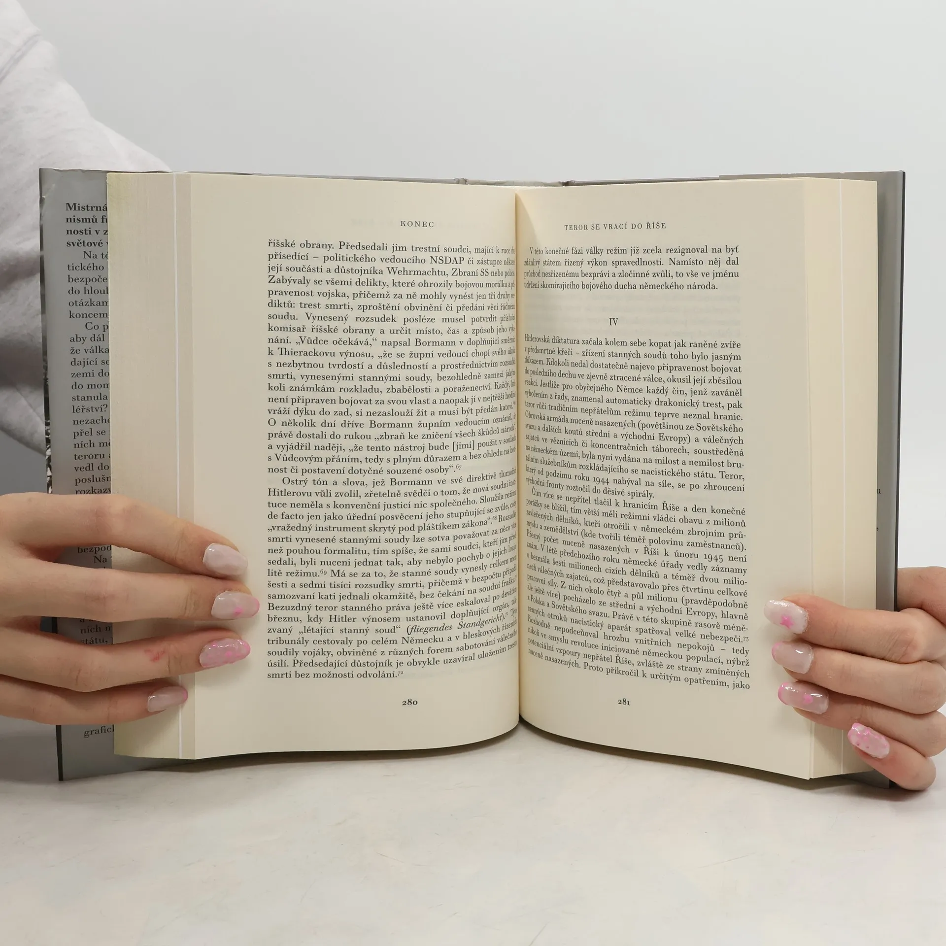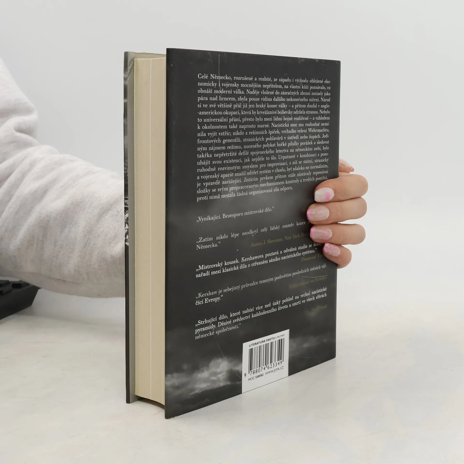 Mistrná a ojedinělá studie mechanismů fungování nacistické společnosti v závěrečných měsících druhé světové války se zabývá zásadními otázkami spojenými s koncem nacistického Německa. Jaké motivy vedly Německo k pokračování v boji, i když bylo jasné, že válku prohrálo? Jak dokázal rozkládající se hitlerovský stát přežít až do příchodu Rudé armády k Říšskému kancléřství? Proč se německý národ nevzpíral režimu, jenž jej vystavil brutálnímu teroru a vedl zemi do záhuby, na rozdíl od situace v roce 1918? Jak armáda stále poslušně plnila Hitlerovy nesmyslné rozkazy? Jakou roli hrály strach a fanatismus v sebezničujícím kurzu? A jak ovlivnil spojenecký požadavek na bezpodmínečnou kapitulaci agonický odpor třetí říše? Ian Kershaw, uznávaný britský historik a expert na éru nacistického Německa, se snaží na tyto otázky odpovědět. Jeho komplexní a dramatické líčení finálních měsíců existence hitlerovského státu začíná nezdařeným atentátem na Hitlera v červenci 1944 a končí jeho smrtí a kapitulací v květnu 1945. Text obsahuje bohatý poznámkový aparát a je doplněn jedinečnou fotografickou přílohou a mapkami.