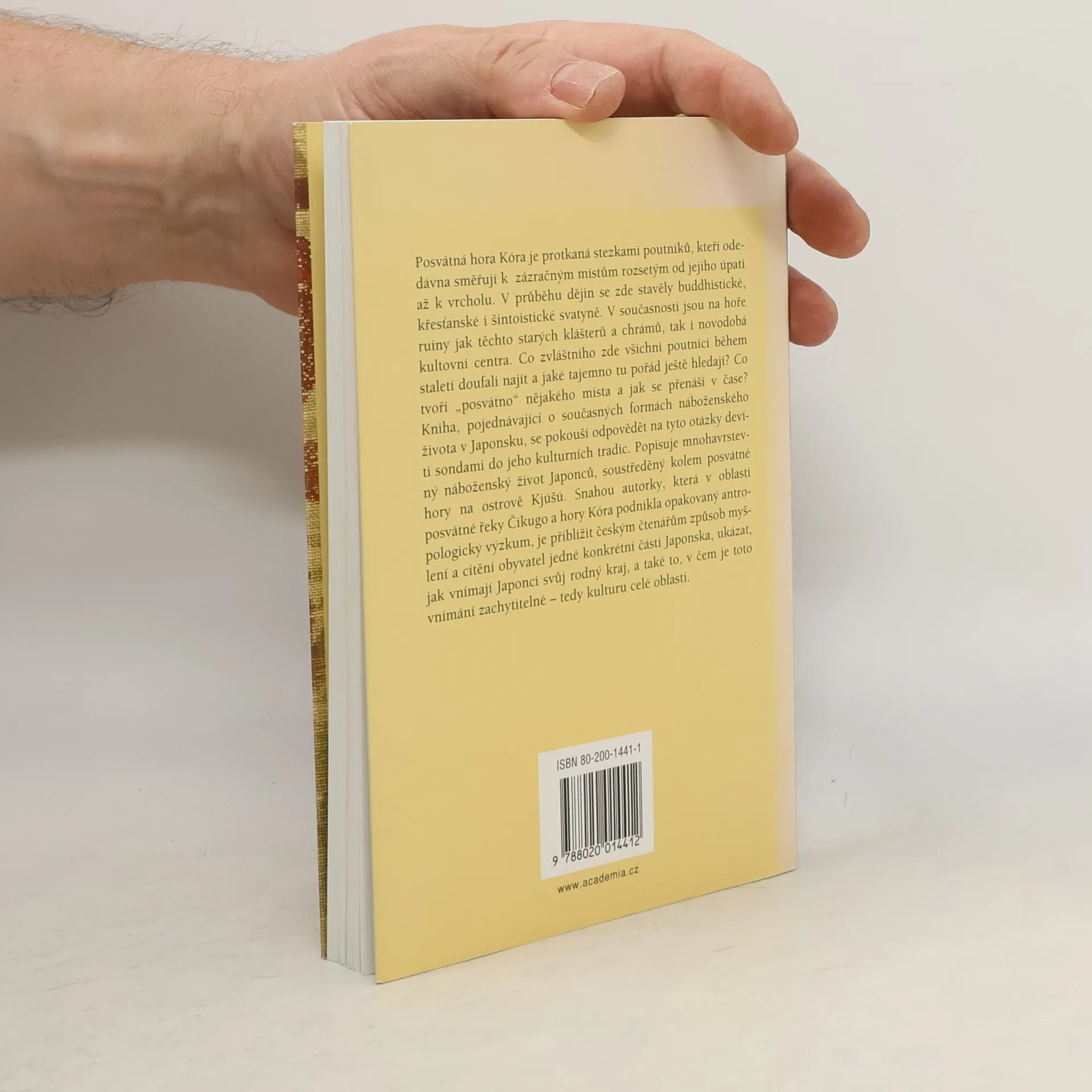 Posvátná hora Kóra je protkaná stezkami poutníků, kteří odedávna směřují k zázračným místům rozsetým od jejího úpatí až k vrcholu. V průběhu dějin se zde stavěly buddhistické, křesťanské i šintoistické svatyně. V současnosti jsou na hoře ruiny jak těchto starých klášterů a chrámů, tak i novodobá kultovní centra. Co zvláštního zde všichni poutníci během staletí doufali najít a jaké tajemno tu pořád ještě hledají? Co tvoří „posvátno“ nějakého místa a jak se přenáší v čase? Kniha, pojednávající o současných formách náboženského života v Japonsku, se pokouší odpovědět na tyto otázky devíti sondami do jeho kulturních tradic. Popisuje mnohavrstevný náboženský život Japonců, soustředěný kolem posvátné hory na ostrově Kjúšú. Snahou autorky, která v oblasti posvátné řeky Čikugo a hory Kóra podnikla opakovaný antropologický výzkum, je přiblížit českým čtenářům způsob myšlení a cítění obyvatel jedné konkrétní části Japonska, ukázat, jak vnímají Japonci svůj rodný kraj, a také to, v čem je toto vnímání zachytitelné – tedy kulturu celé oblasti.